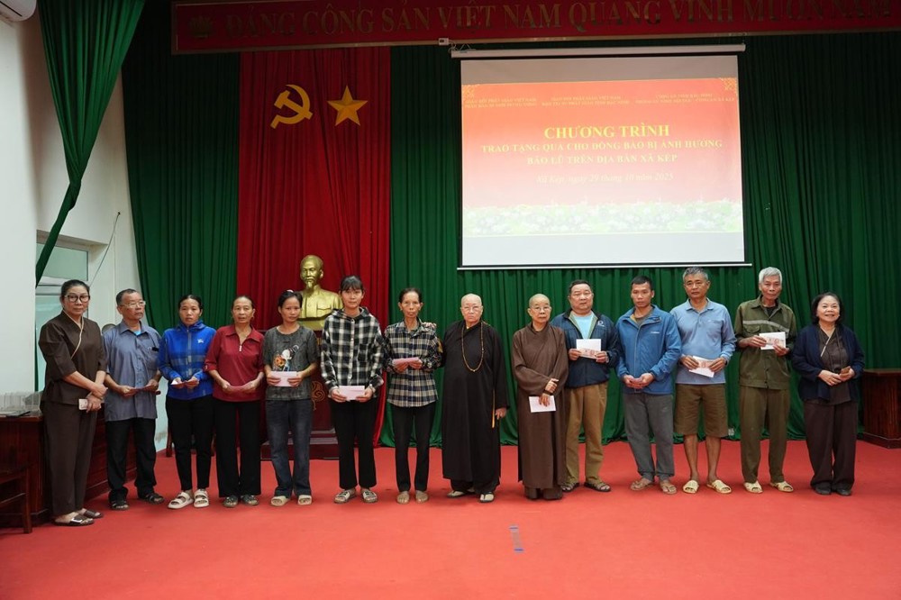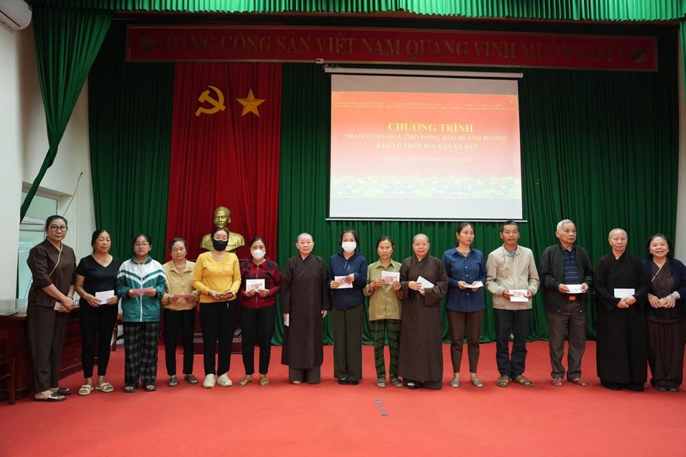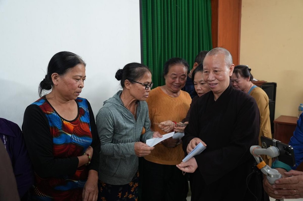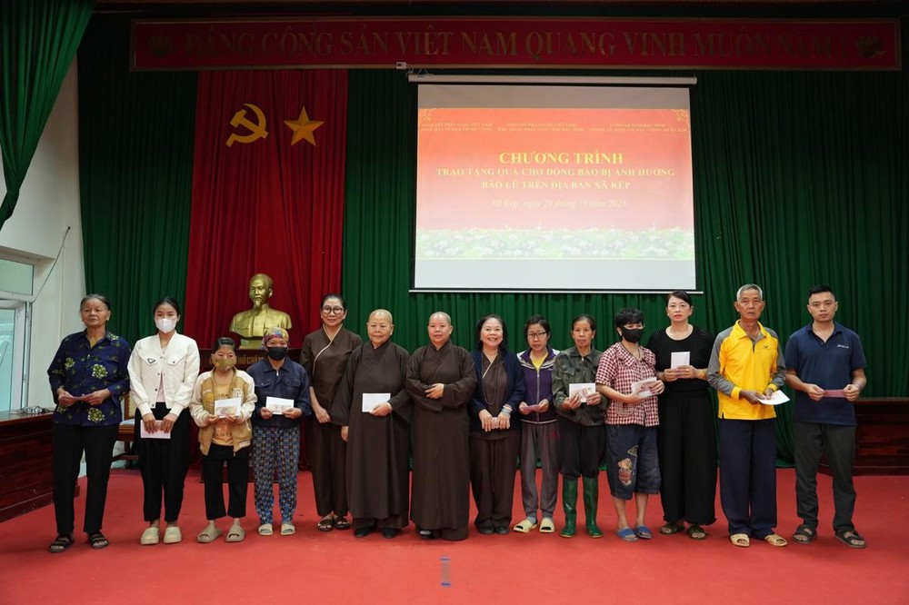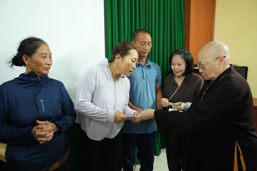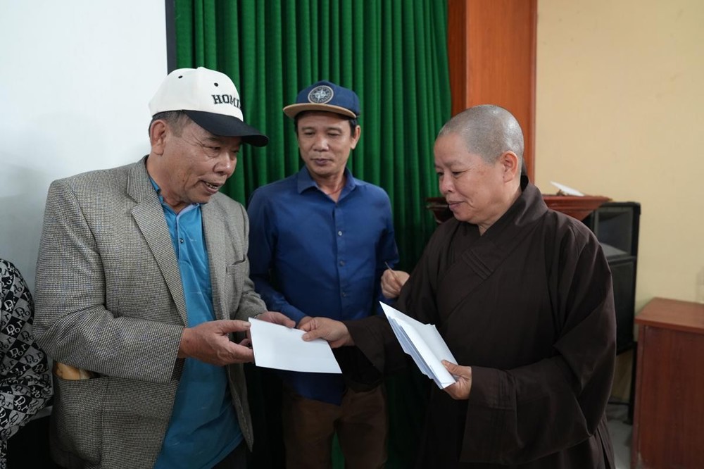Quý chư Ni động viên bà con: “Những gì thiên tai lấy đi, lòng người sẽ cùng nhau gây dựng lại. Xin bà con hãy vững tin – bởi bên cạnh bà con luôn có Đảng, Nhà nước, chính quyền các cấp, có nghĩa tình đồng bào cả nước và có cả tình thương bao la của Tăng Ni, Phật tử GHPGVN”.