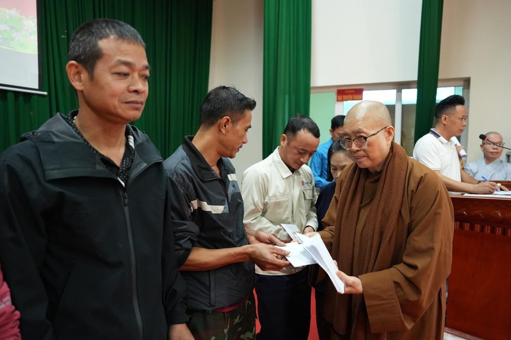 Giữa tiết trời thu mát dịu, những nụ cười hiền hậu của bà con khi đón nhận món quà từ tay chư Ni như làm ấm cả không gian. Những giọt nước mắt xúc động hòa trong niềm tri ân sâu sắc, để lại hình ảnh đẹp về tinh thần “lá lành đùm lá rách”, “thương người như thể thương thân” của những người con đất Việt.