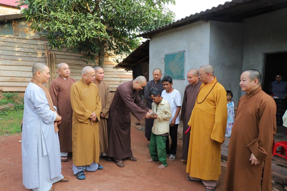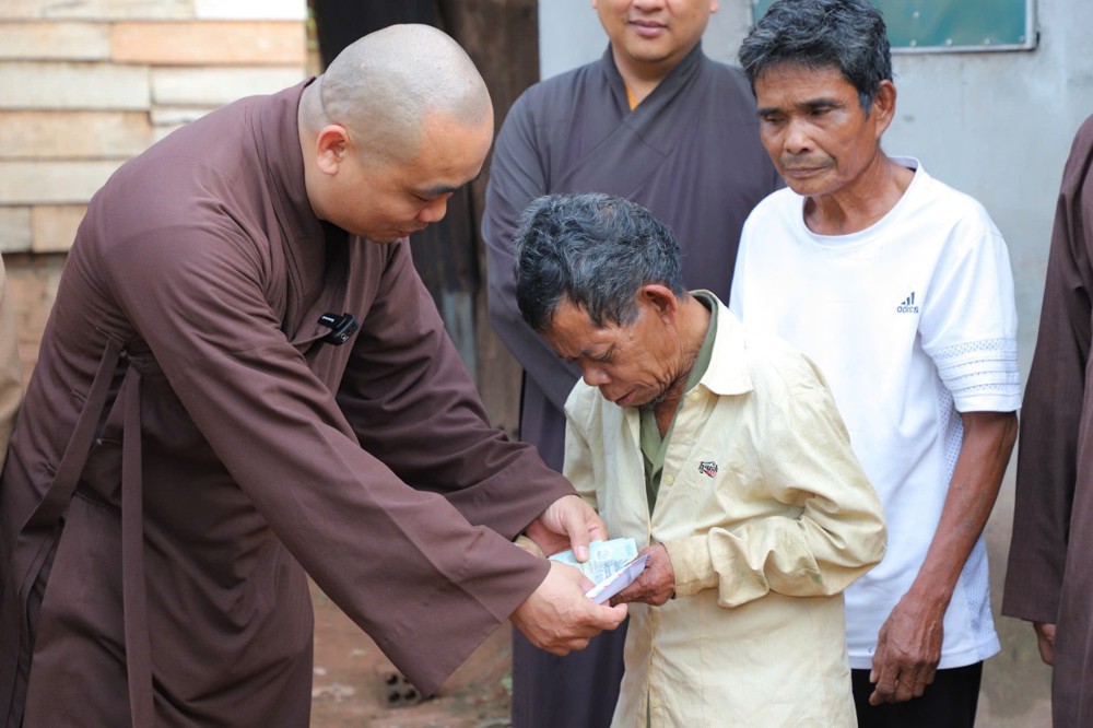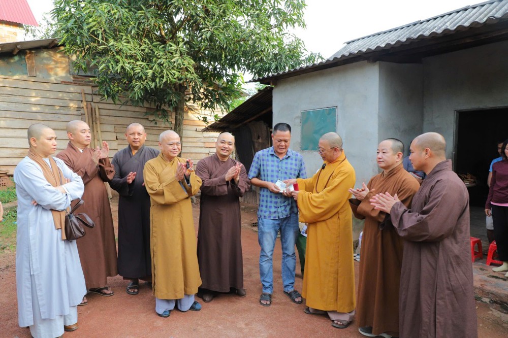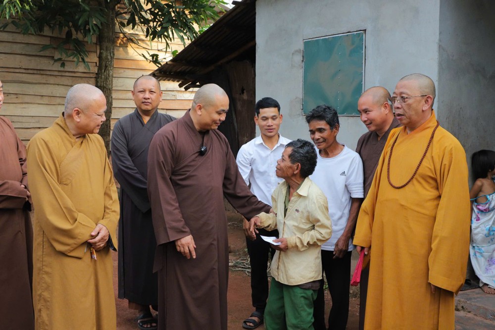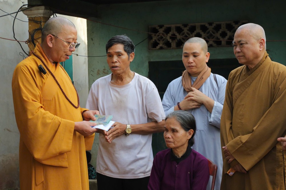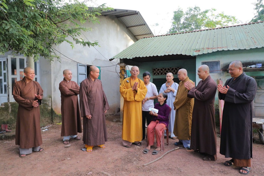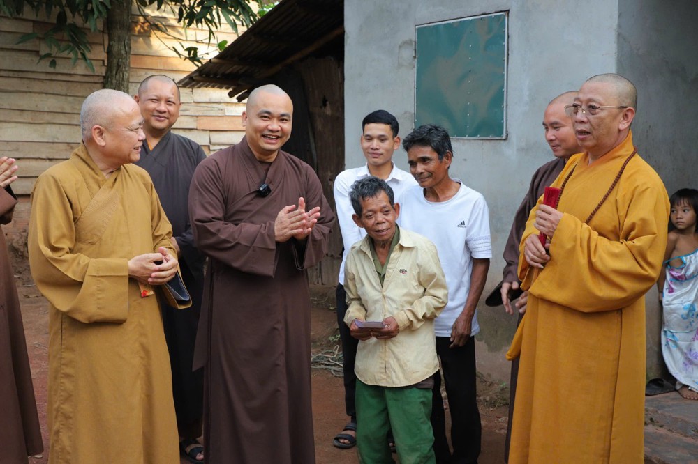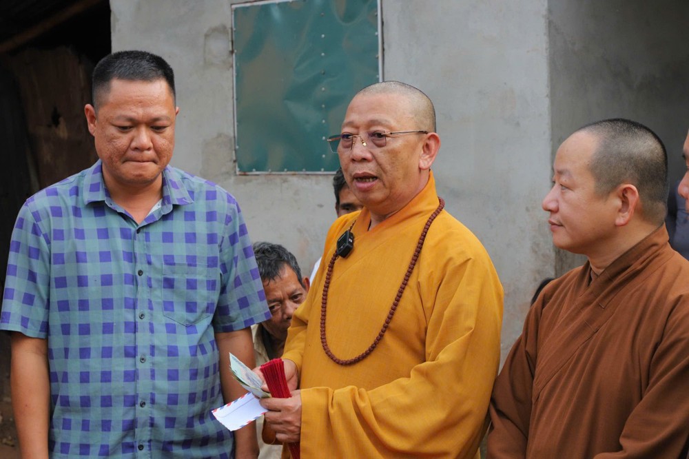 Sau chương trình, đoàn Phân ban đã đến tận nhà thăm hỏi và trao tặng quà cho 3 hộ gia đình đặc biệt khó khăn, mỗi hộ 3 triệu đồng, nhằm chia sẻ, động viên bà con vượt qua hoạn nạn, sớm ổn định cuộc sống. Chuyến công tác ngày đầu tiên khép lại trong không khí hoan hỷ, đong đầy nghĩa tình đạo vị. Những phần quà tuy không lớn, nhưng đã thể hiện trọn vẹn tinh thần “Từ bi – Trí tuệ – Đồng hành cùng dân tộc” mà Phật giáo Việt Nam luôn gìn giữ và phát huy.