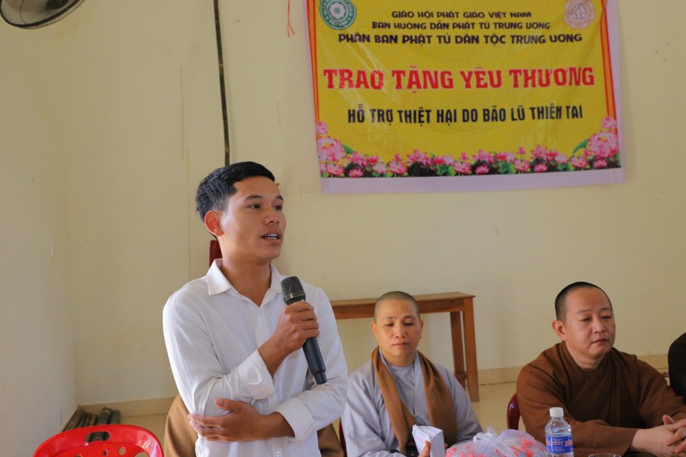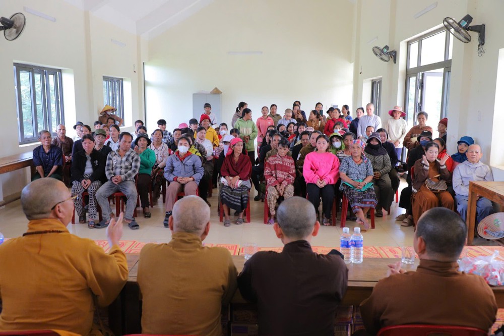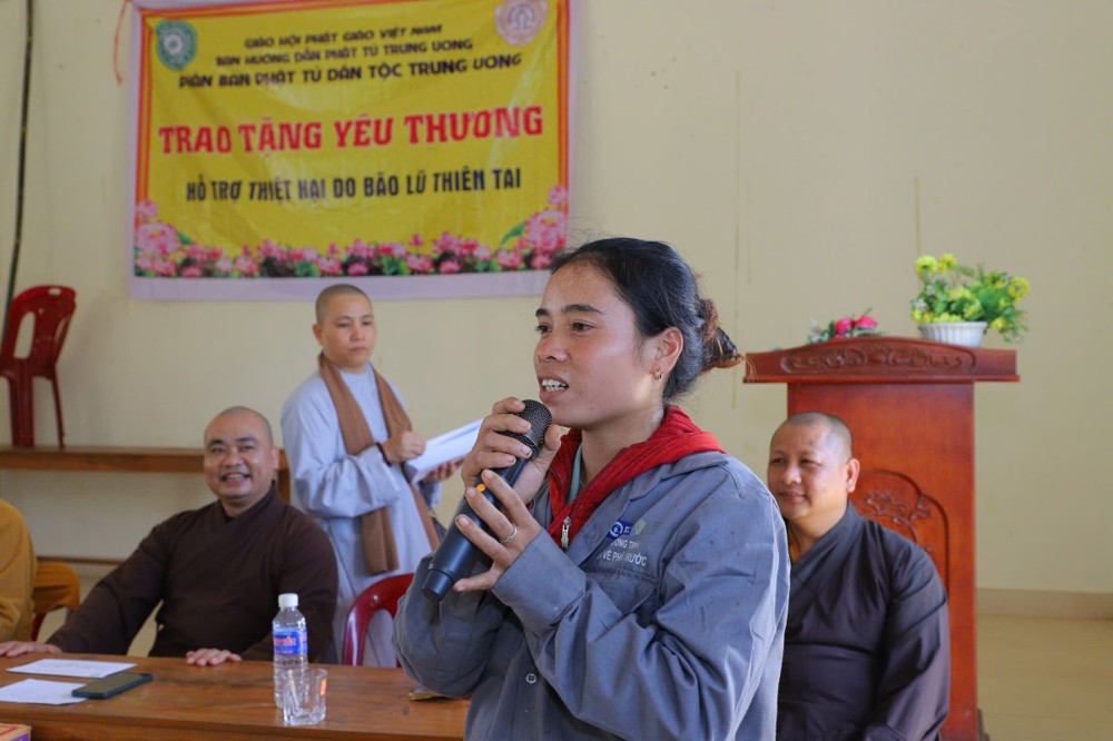 Phát biểu trong niềm xúc động, chị Hồ Thị Tiệp, đại diện đồng bào dân tộc tại thôn A Quan bày tỏ lòng biết ơn đến chư Tôn đức và các Phật tử đã không quản đường xa đến thăm, tặng quà, giúp đỡ bà con trong lúc khó khăn. Những tình cảm này khiến người đồng bào dân tộc nơi đây ấm lòng.
