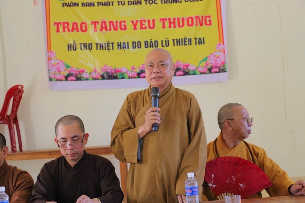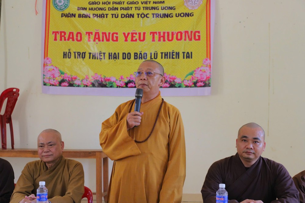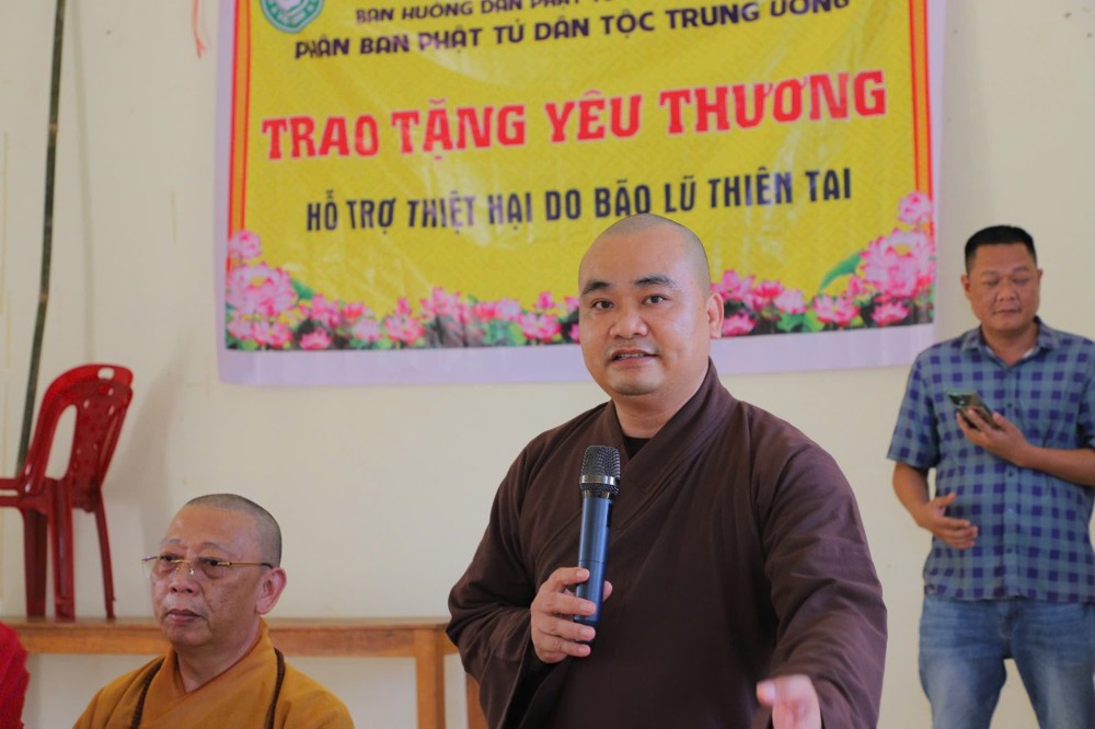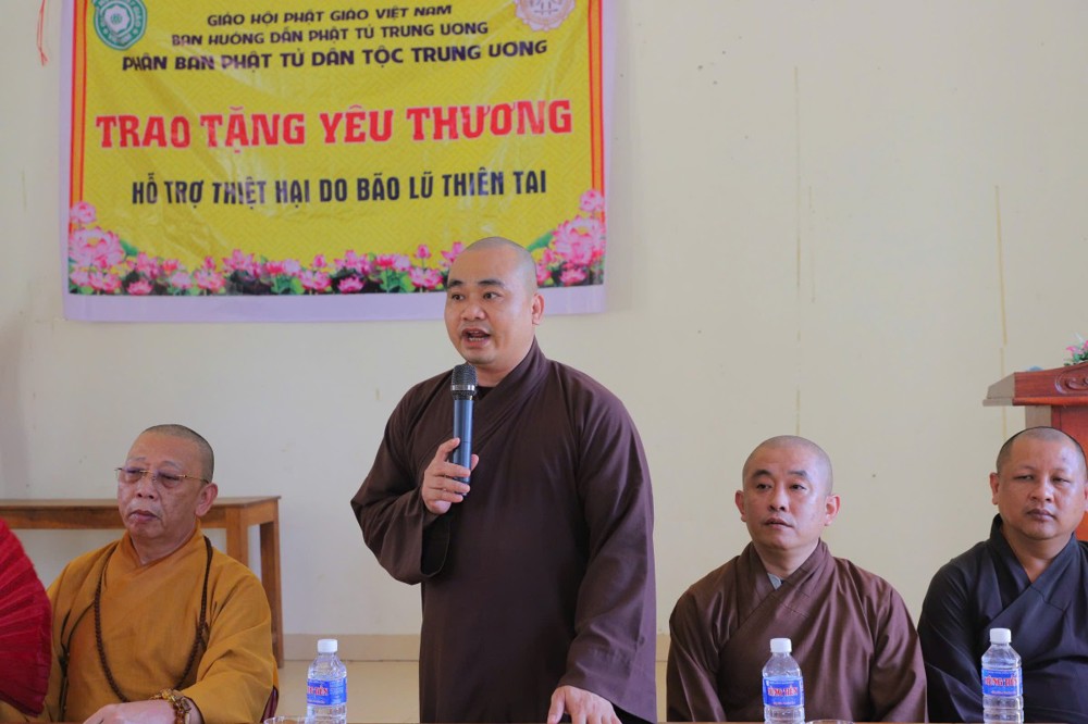 Phát biểu tại buổi trao quà, Thượng tọa Thích Quảng Tuấn chia sẻ, Đồng bào Dân tộc là một phần máu thịt thiêng liêng của Tổ quốc. Dù ở nơi biên cương xa xôi, nhưng tình cảm của Giáo hội, của Tăng Ni và Phật tử khắp nơi luôn hướng về bà con với tấm lòng từ bi và sẻ chia. Mong rằng những phần quà tuy nhỏ này sẽ giúp bà con thêm vững lòng, vượt qua khó khăn, ổn định cuộc sống.