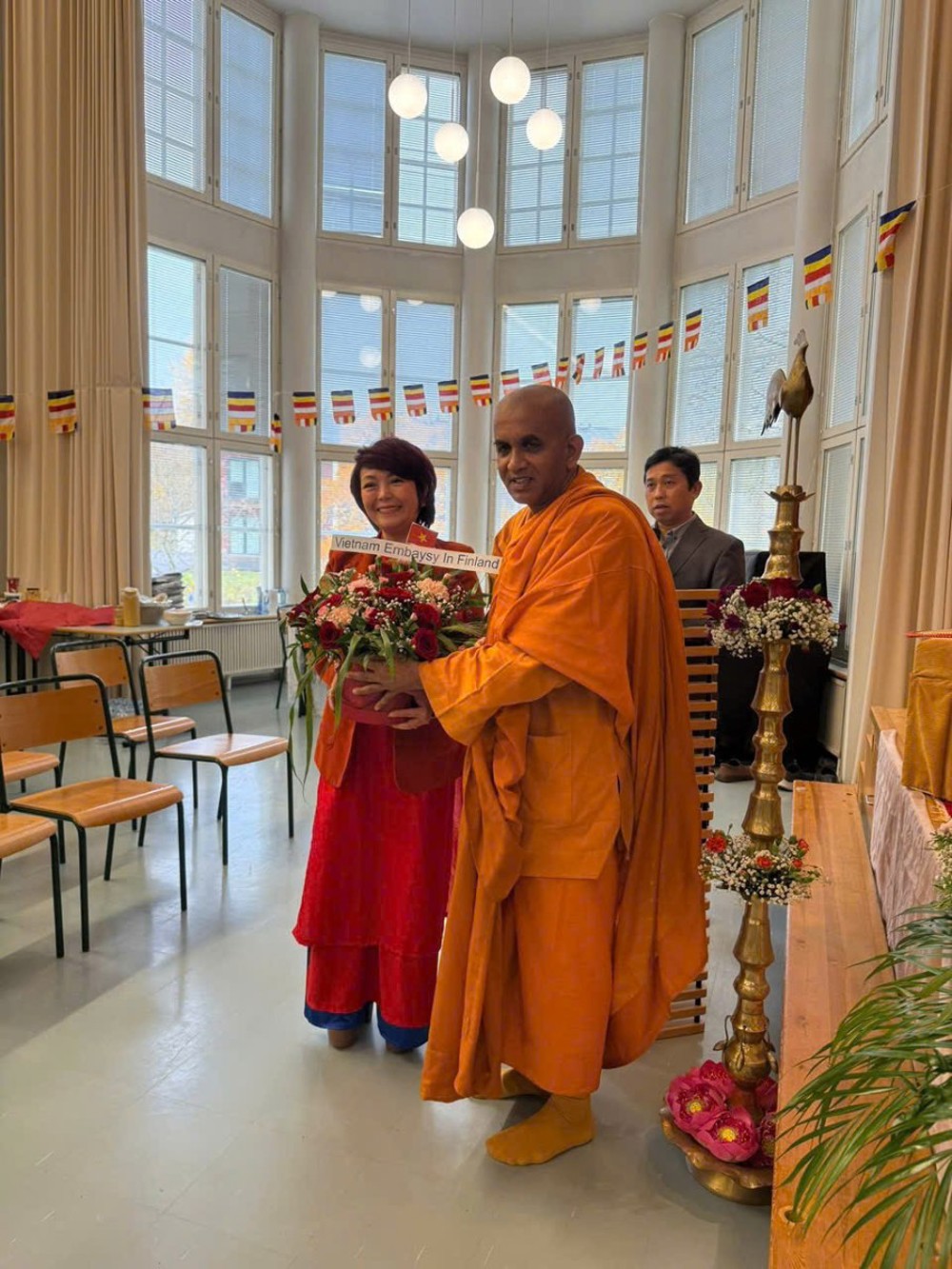Trong không khí trang trọng của lễ hội, chùa Đại Thọ cũng vinh dự đón tiếp bà Phan Hoa - Bí thư thứ nhất Đại sứ quán Việt Nam tại Phần Lan. Bà đã có những lời chúc mừng sâu sắc, đánh giá cao sự phát triển của cộng đồng Phật tử tại Phần Lan, đồng thời khẳng định sự gắn kết giữa Phật giáo Việt Nam với các truyền thống Phật giáo quốc tế.