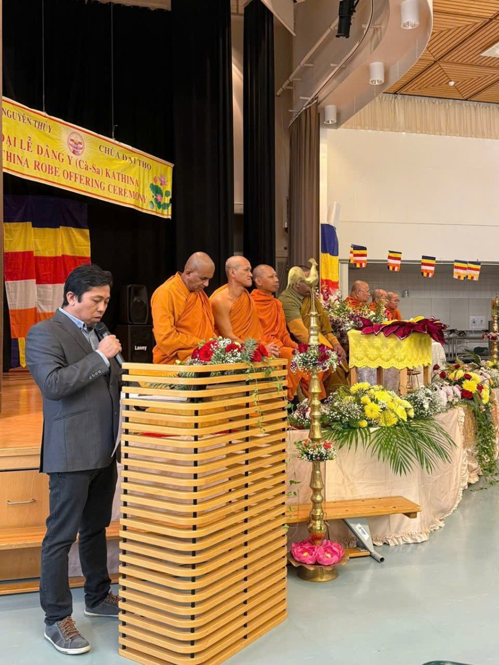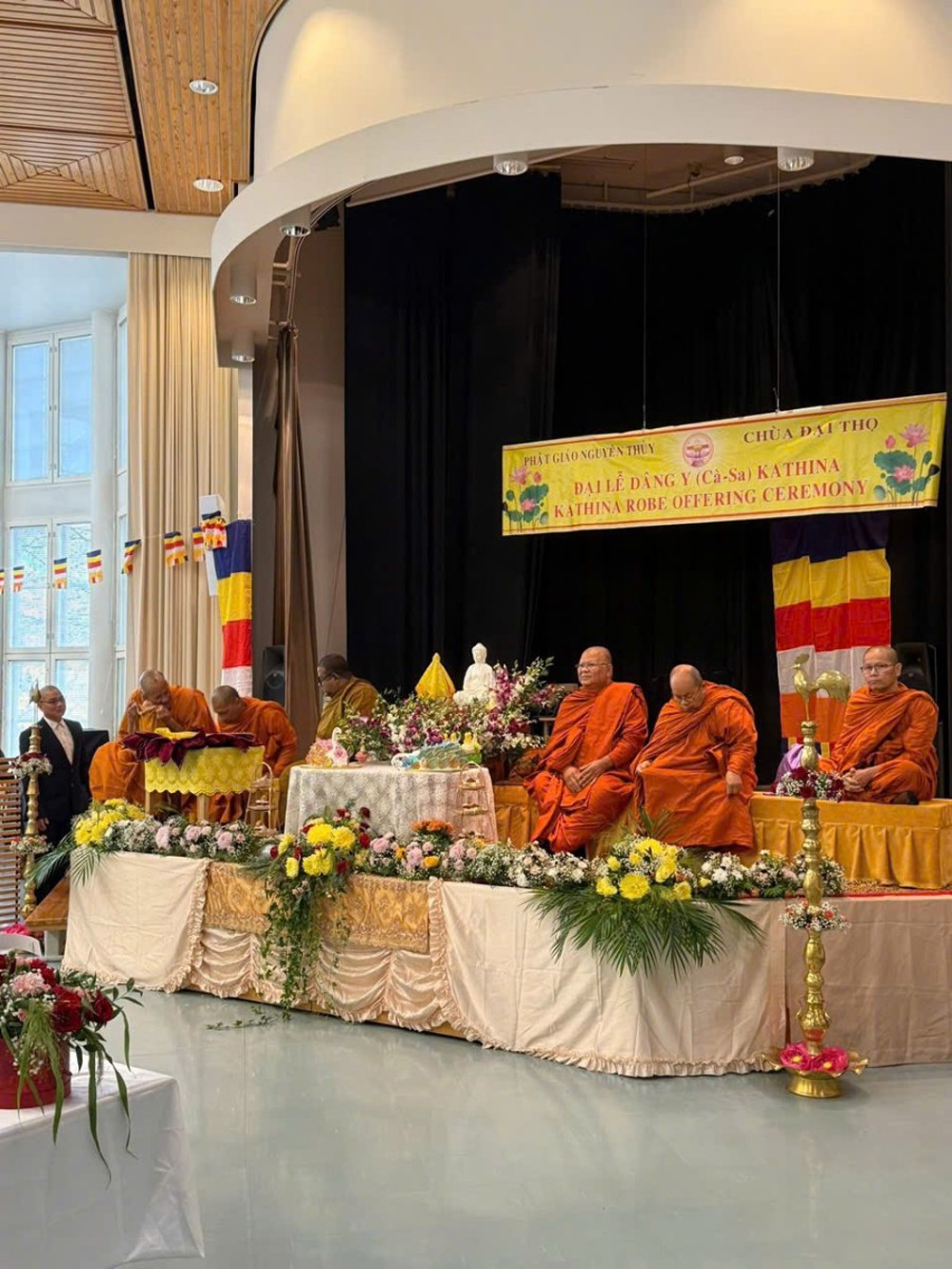 Chứng minh lễ dâng y Kaṭhina là sự hiện diện của các vị cao tăng, bao gồm Hòa thượng Luang Por Nuan - Trụ trì chùa Buddharama, Hòa thượng Ananda Mangala - đại diện lãnh đạo tinh thần Phật giáo Tích Lan tại Phần Lan, Thượng tọa Samchai - Trụ xứ chùa Buddharama, Thượng tọa Phra Yutthapol và Thượng tọa Anoma đồng trụ xứ chùa Đại Thọ; cùng sự chứng dự của chư Tăng Thái Lan đang trụ xứ tại chùa Thái. Các vị đã cùng nhau chủ trì nghi thức dâng y, mang lại sự trang nghiêm, thanh tịnh cho buổi lễ.