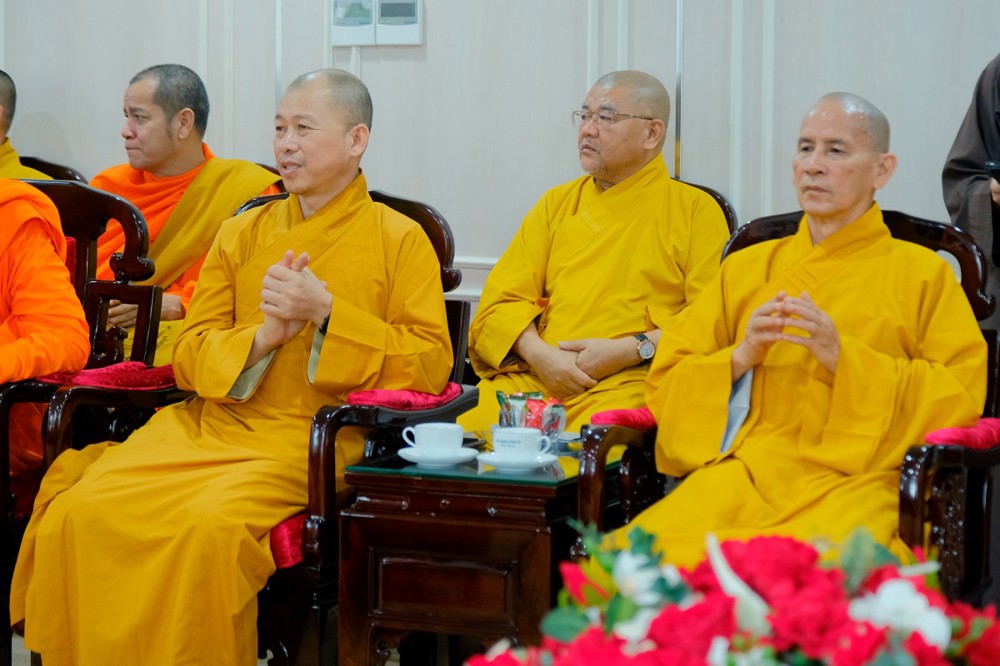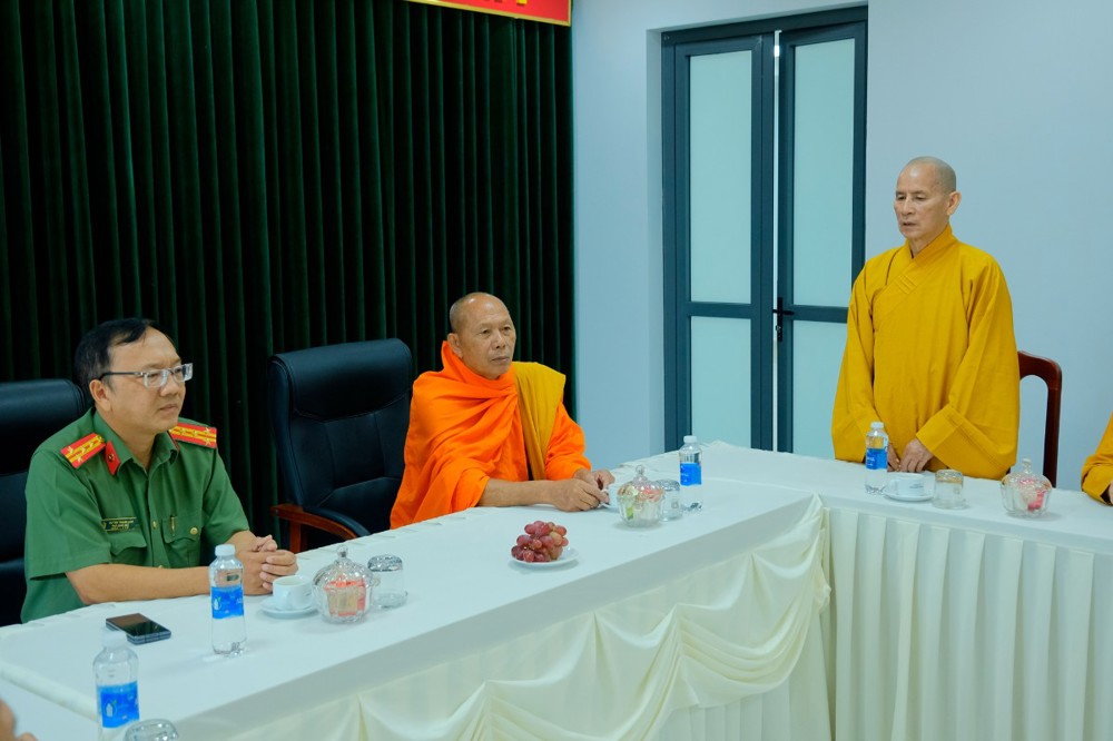 Đi cùng đoàn có Thượng tọa Thích Minh Nhẫn, Ủy viên Thư ký HĐTS, Phó Văn phòng 2 TƯGH, Phó trưởng ban Thường trực Ban Trị sự GHPGVN tỉnh; Thượng tọa Thích Viên Quang, Ủy viên HĐTS, Phó trưởng ban Thường trực Ban Trị sự GHPGVN tỉnh, chư Tôn đức Thường trực Ban Trị sự GHPGVN tỉnh và Hội Đoàn kết Sư sãi yêu nước tỉnh.