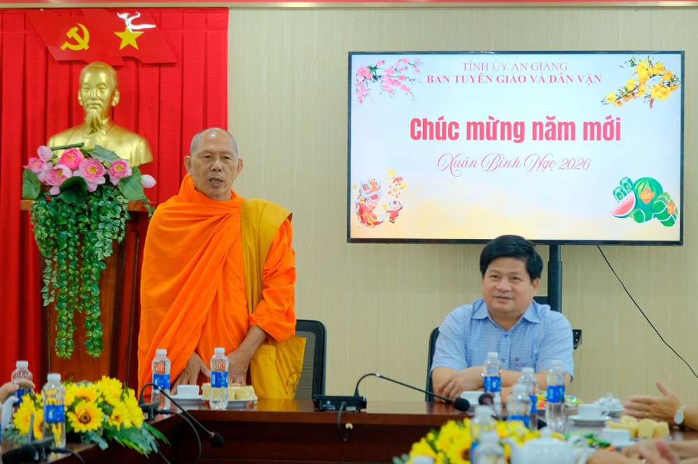 Nhân dịp năm mới, lãnh đạo tỉnh gửi lời chúc tốt đẹp đến chư Tôn đức Tăng Ni và đồng bào Phật tử trong tỉnh, mong muốn Phật giáo An Giang tiếp tục phát huy truyền thống “hộ quốc an dân”, giữ vững tinh thần đoàn kết, hướng dẫn tín đồ sống “tốt đời, đẹp đạo”, thực hiện tốt các chủ trương của Đảng, chính sách, pháp luật của Nhà nước.