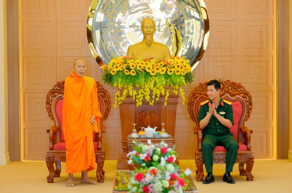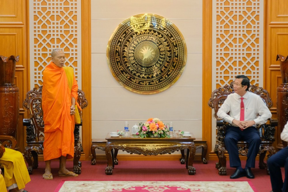 Tiếp đoàn có bà Trần Thị Thanh Hương, Phó Bí thư Tỉnh ủy, Trưởng đoàn Đại biểu Quốc hội, Chủ tịch Ủy ban MTTQVN tỉnh; ông Tống Phước Trường, Ủy viên Ban Thường vụ Tỉnh ủy, Trưởng ban Tuyên giáo và Dân vận Tỉnh ủy; ông Giang Văn Phục, Tỉnh ủy viên, Phó chủ tịch Hội đồng Nhân dân tỉnh; ông Lê Văn Phước, Tỉnh ủy viên, Phó chủ tịch Ủy ban Nhân dân tỉnh; ông Danh Phúc, Tỉnh ủy viên, Giám đốc Sở Dân tộc và Tôn giáo tỉnh; Đại tá Huỳnh Văn Khởi, Tỉnh ủy viên, Chính ủy Bộ chỉ huy Quân sự tỉnh; Đại tá Huỳnh Thanh Lâm, Phó giám đốc Công an tỉnh.
