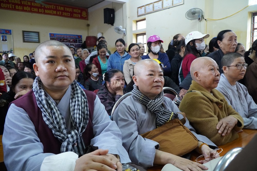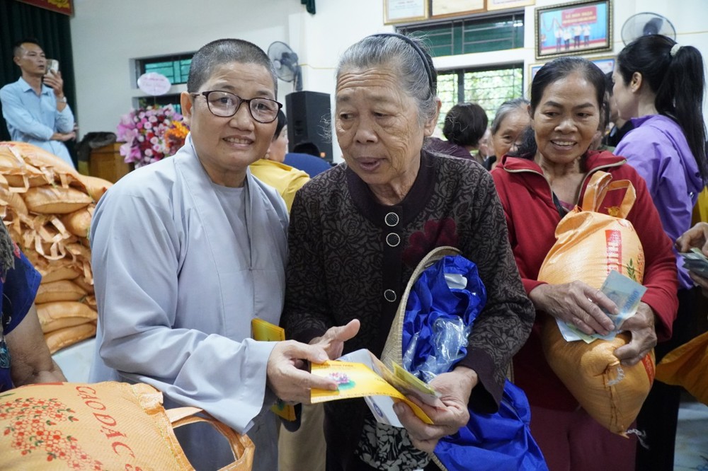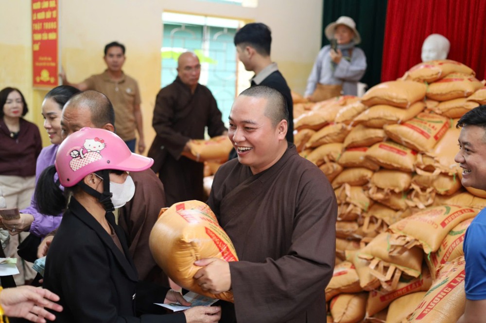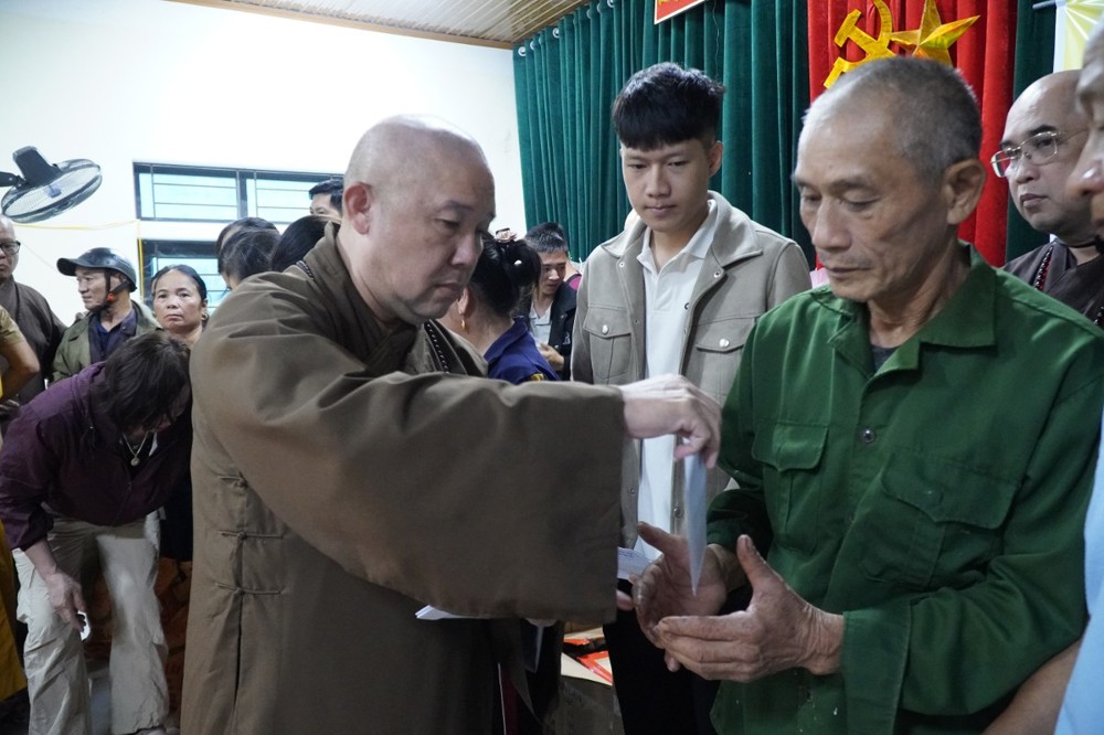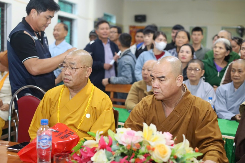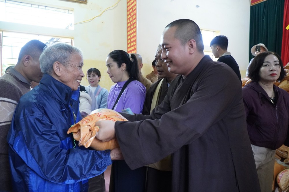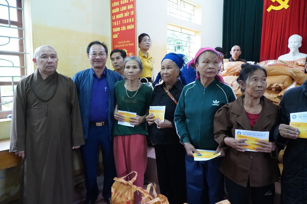 Phát biểu trong buổi trao quà tại Bản Lâm Hội, Thượng tọa Thích Tĩnh Triệt, Trưởng đoàn chia sẻ: “Mỗi phần quà tuy nhỏ bé nhưng là tấm lòng của Tăng Ni, Phật tử Đồng Tháp gửi gắm đến đồng bào Nghệ An thân thương. Mong rằng quý bà con sớm vượt qua khó khăn, ổn định cuộc sống. Đây không chỉ là sự hỗ trợ vật chất, mà còn là sợi dây kết nối tình người, lan tỏa tinh thần ‘lá lành đùm lá rách’ trong ánh sáng từ bi của Đức Phật.”