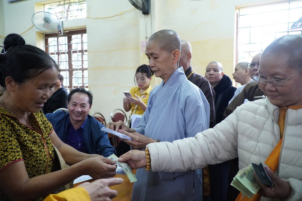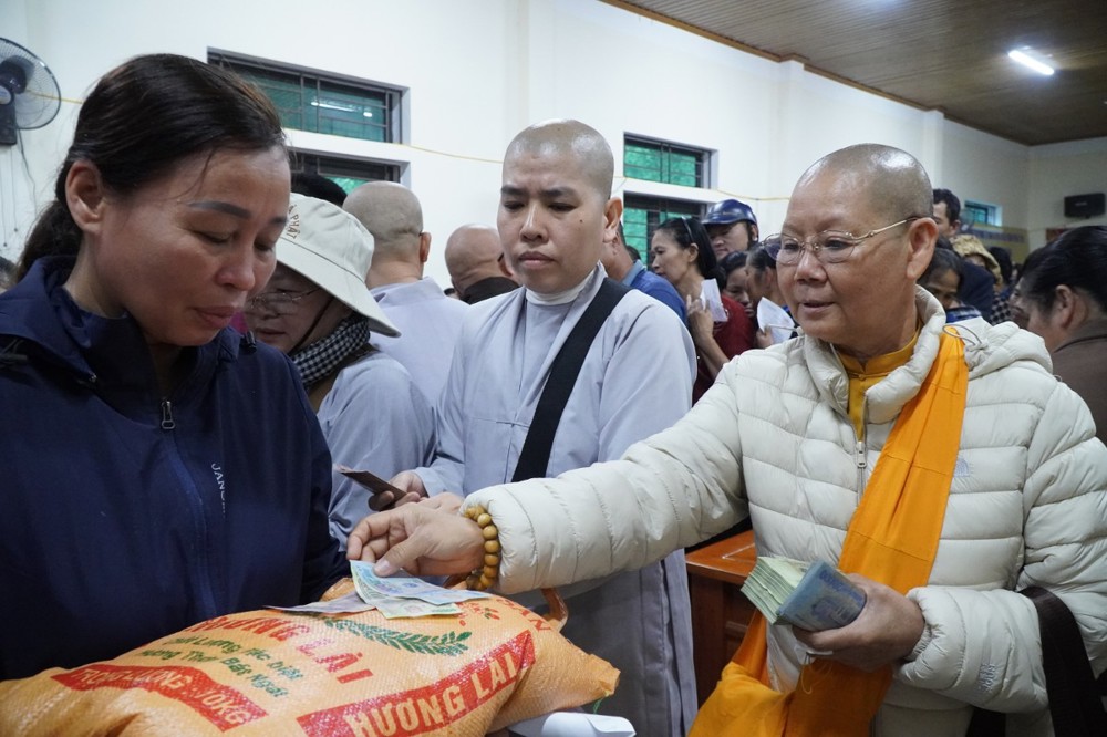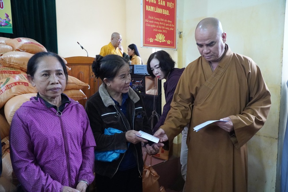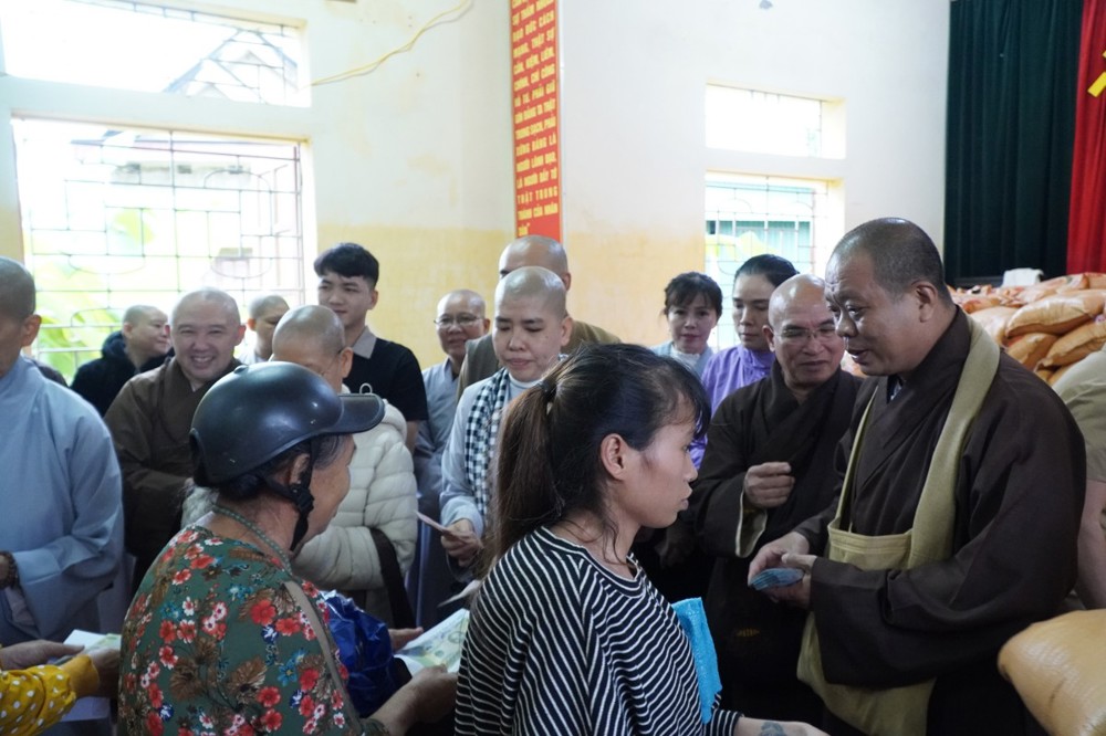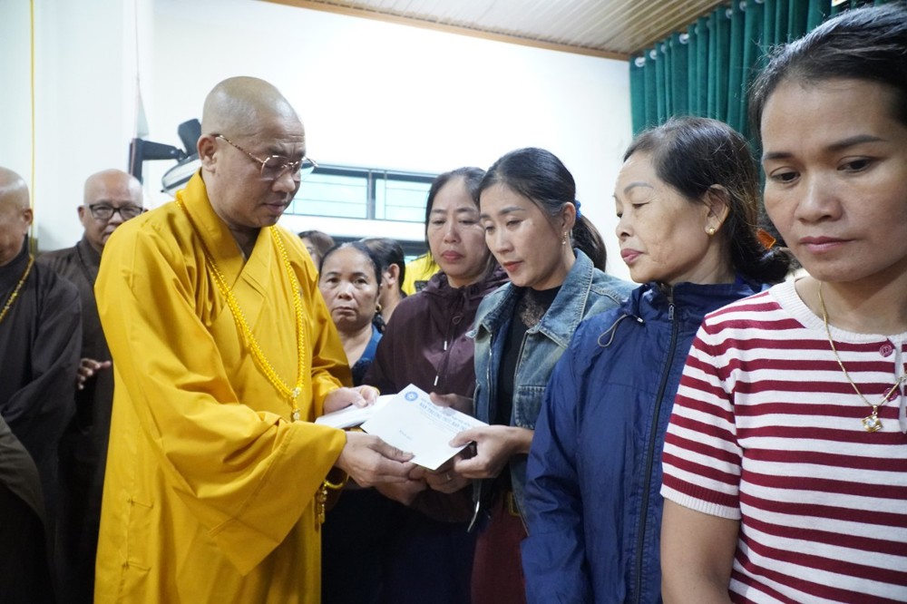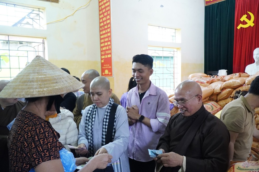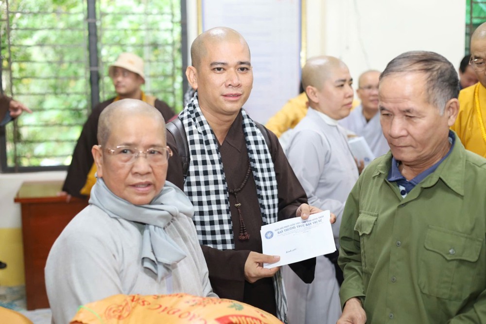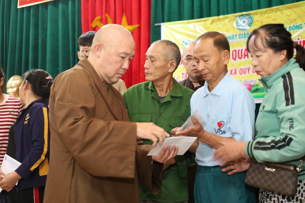 Ngày 1/11 đoàn khởi hành đến Bản Lâm Hội và Thôn 3 thuộc xã vùng cao Quỳ Châu, nơi chịu thiệt hại nặng nề sau bão. Tại 2 địa điểm, đoàn đã trao 1.000 phần quà gồm tiền mặt trị giá 1.000.000 đồng/phần, do Ban Trị sự GHPGVN tỉnh Đồng Tháp ủng hộ, cùng gạo, mì, nhu yếu phẩm do chư Tăng Ni và Phật tử các tự viện chung tay đóng góp. Tổng trị giá hơn 01 tỷ đồng.