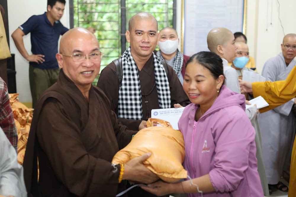 Đoàn do Thượng tọa Thích Tĩnh Triệt – Ủy viên HĐTS, Trưởng ban Trị sự GHPGVN tỉnh Đồng Tháp làm Trưởng đoàn, cùng với Thượng tọa Thích Quảng Lộc – Phó trưởng Ban Thường trực BTS GHPGVN tỉnh; Thượng tọa Thích Chơn Trí – Phó trưởng Ban Thường trực kiêm Trưởng ban Từ thiện Xã hội Phật giáo tỉnh; chư Tôn đức Tăng Ni các tự viện và Phật tử, mạnh thường quân tháp tùng cùng đoàn.
