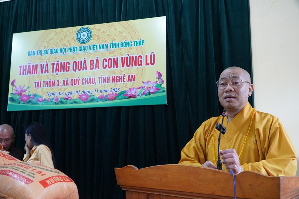 PSO - Trong tinh thần “Từ bi – Cứu khổ – Ban vui” của đạo Phật, nhằm chia sẻ những khó khăn cùng đồng bào miền Trung sau các cơn bão vừa qua, Ban Trị sự Giáo hội Phật giáo Việt Nam tỉnh Đồng Tháp đã tổ chức chuyến thăm và san sẻ yêu thương đến bà con tại tỉnh Nghệ An từ ngày 31/10 đến 2/11/2025 (nhằm ngày 11 – 13/9 năm Ất Tỵ).