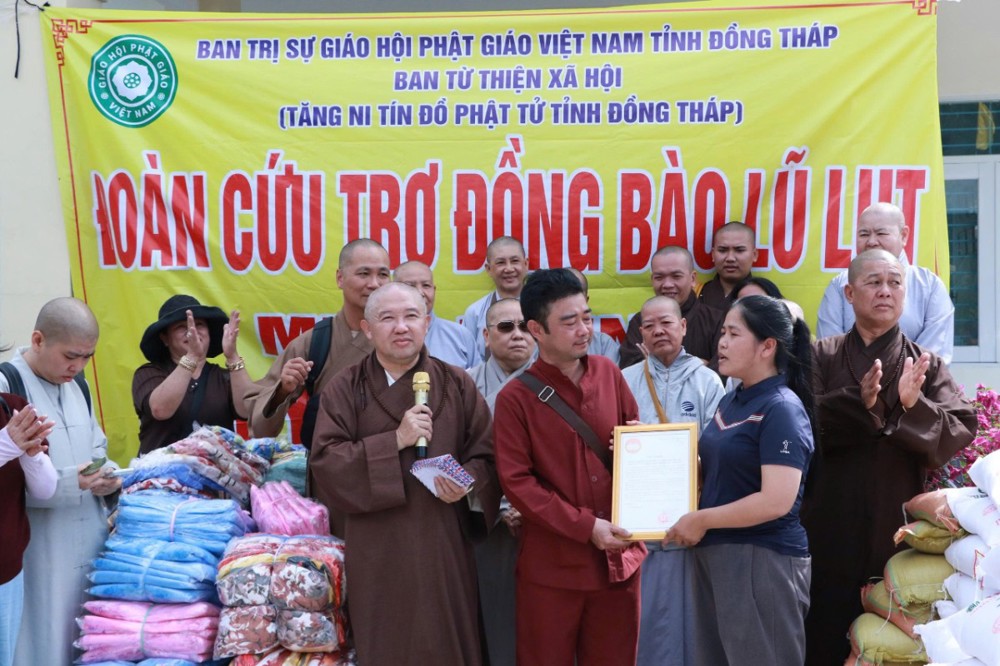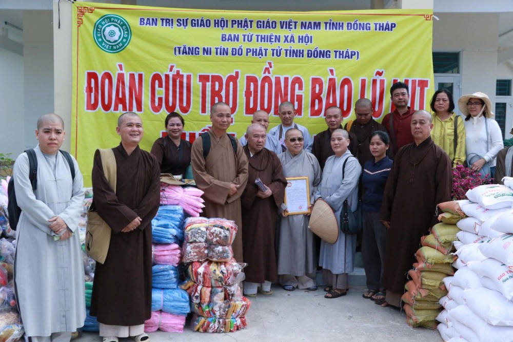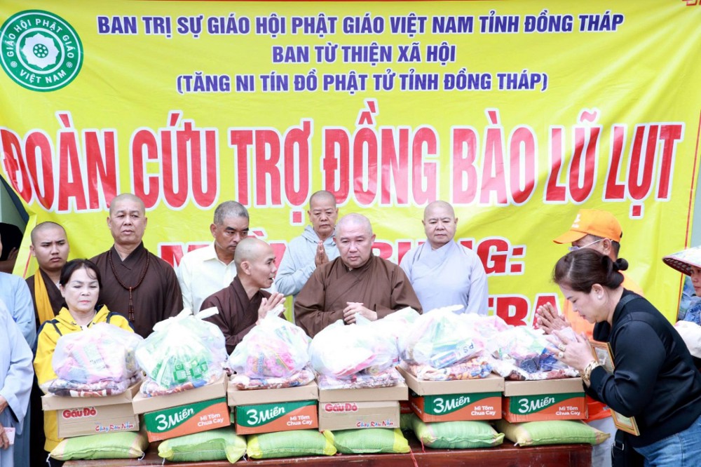 Chủ yếu là thực phẩm thiết yếu trong sinh hoạt hằng ngày như: thùng mì, đường, bột ngọt v.v…và phong bì 700 nghìn đồng. Tổng số tiền chuyến từ thiện của Phật giáo tỉnh Đồng Tháp với 1 tỷ100 triệu đồng. Đây là những đóng góp của tấm lòng tương thân tương ái từ Tăng Ni, đồng bào Phật tử vùng đất Sen Hồng Đồng Tháp hướng về bà con miền Trung thân yêu.