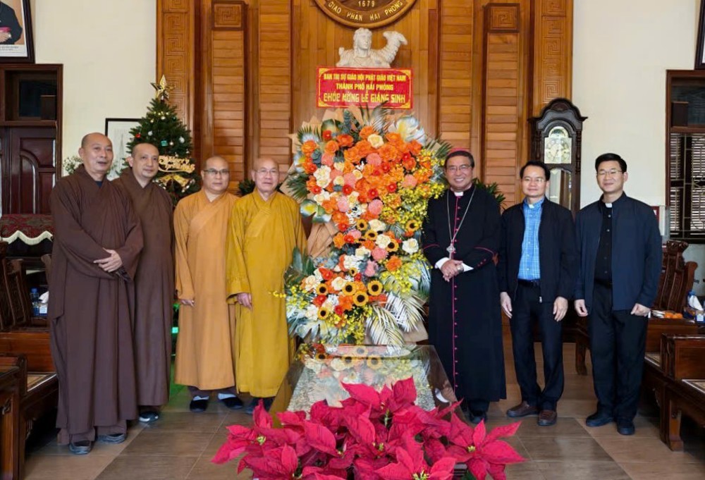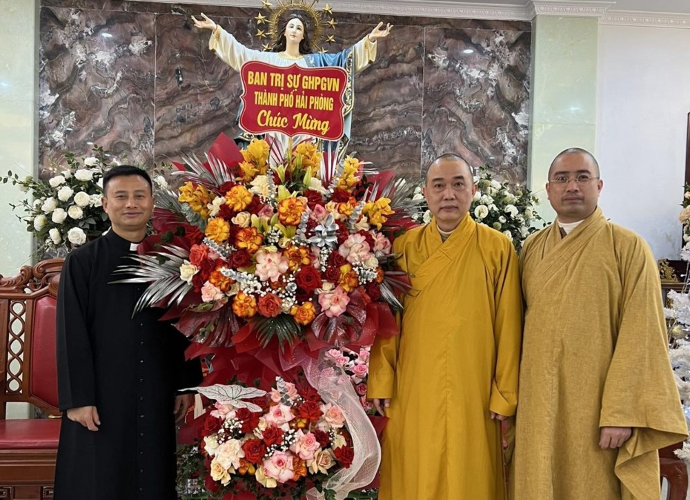 Chiều ngày 24/12/2025 (nhằm ngày 05/11 năm Ất tỵ), Hòa thượng Thích Quảng Tùng, Phó Chủ tịch HĐTS GHPGVN, Trưởng BTS GHPGVN Thành phố Hải Phòng làm trưởng đoàn, đã tới Nhà thờ chính tòa, thuộc Tòa Giám mục Giáo phận Thành phố Hải Phòng thăm và tặng hoa chúc mừng nhân mùa Giáng sinh năm 2025.