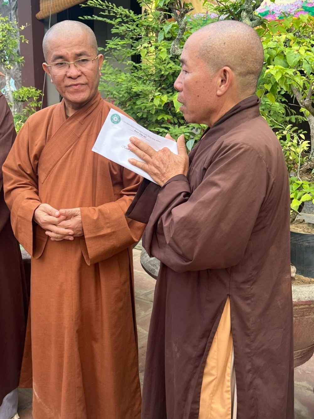 Cùng đi trong đoàn có TT. Thích Từ Minh – ủy viên thường trực BTS, Chứng minh Ban Kinh tế – Tài chánh Phật giáo tỉnh; Ni sư Thích Nữ Chơn Tịnh – ủy viên thường trực BTS, Thủ quỹ Ban Trị sự; Ni sư Thích Nữ Hạnh Khai – ủy viên thường trực BTS, Phó Thường trực Ban Từ thiện Xã hội Phật giáo tỉnh; cùng chư Tôn đức và quý cư sĩ thành viên Ban Từ thiện Xã hội Phật giáo tỉnh.