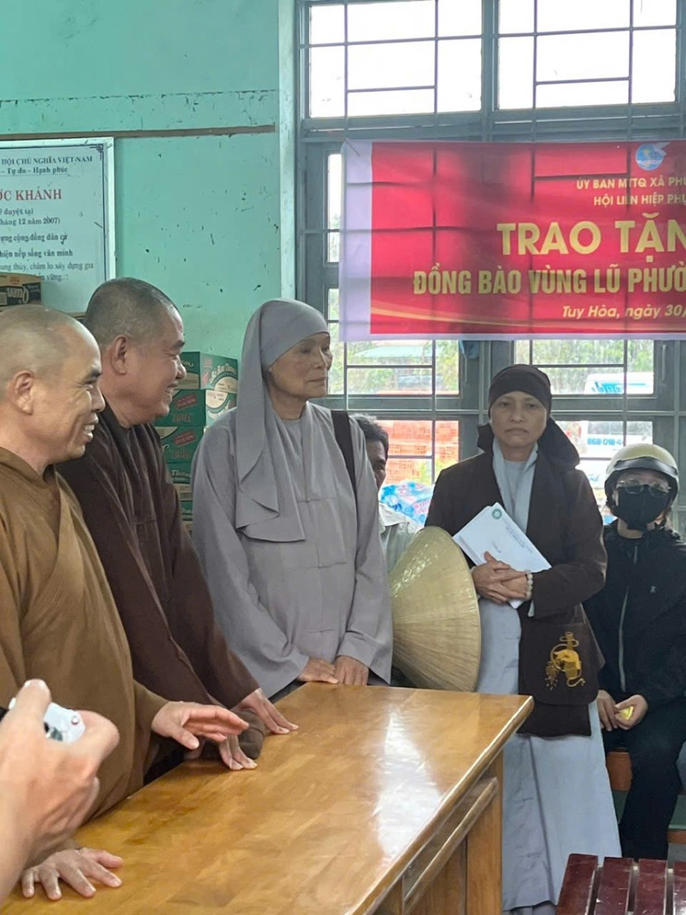 Ngày 7/12/2025, tại chùa Phước Long (Diên Khánh, tỉnh Khánh Hòa) đoàn được Thượng tọa Thích Thiện Phước – Phó Ban kiêm Chánh Thư ký Ban Trị sự Phật giáo Khánh Hòa – tiếp đón và phối hợp tổ chức. Sau khi thăm hỏi và chúc đồng bào có nhiều sức khỏe, sớm ổn định cuộc sống, đoàn đã trao 307 phần quà đến đại diện các hộ dân.
