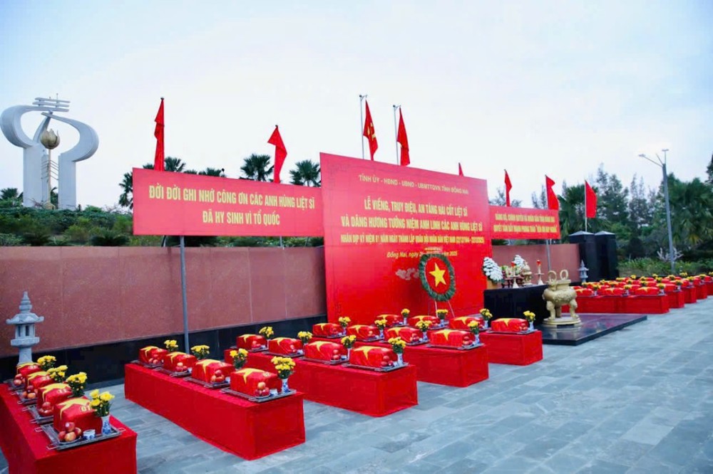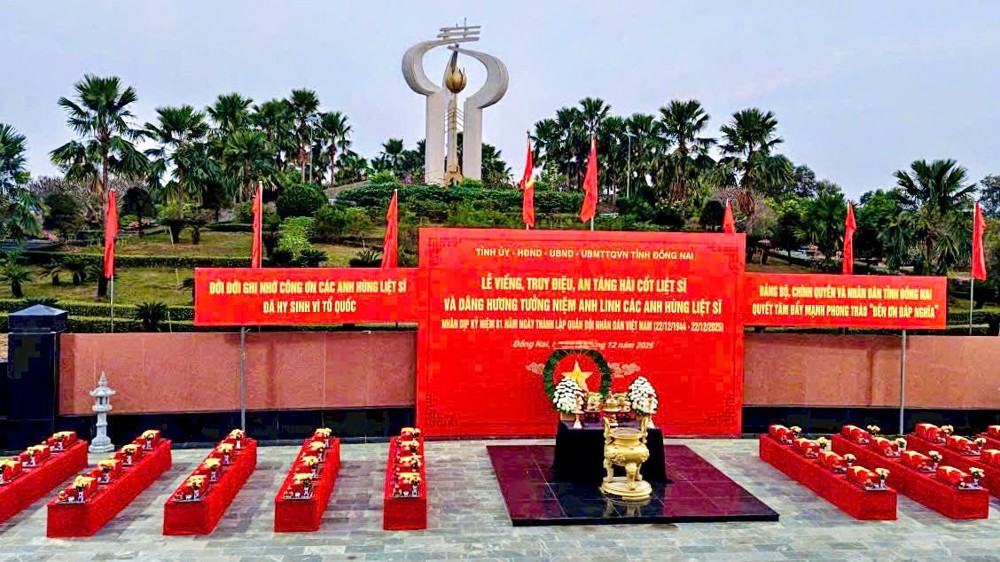 PSO - Sáng ngày 19/12/2025, trong không khí trang nghiêm, thành kính và đầy xúc cảm, hướng tới kỷ niệm 81 năm Ngày thành lập Quân đội Nhân dân Việt Nam (22/12/1944 – 22/12/2025), Ban Trị sự Giáo hội Phật giáo Việt Nam tỉnh Đồng Nai đã phối hợp cùng Ủy ban Mặt trận Tổ quốc Việt Nam tỉnh Đồng Nai và Bộ Chỉ huy Quân sự tỉnh Đồng Nai long trọng tổ chức lễ truy điệu, an táng và cầu siêu cho 41 hài cốt Liệt sĩ tại Nghĩa trang Liệt sĩ tỉnh Đồng Nai.
