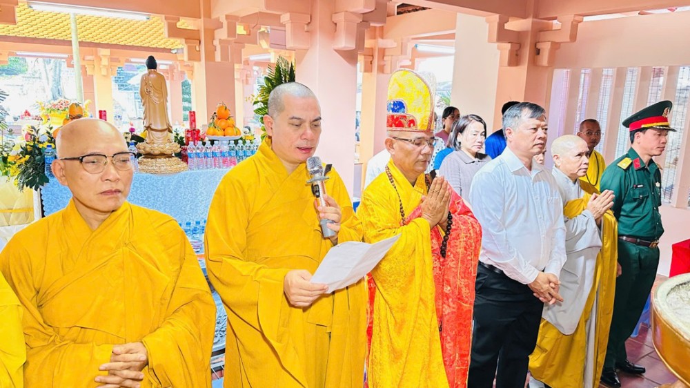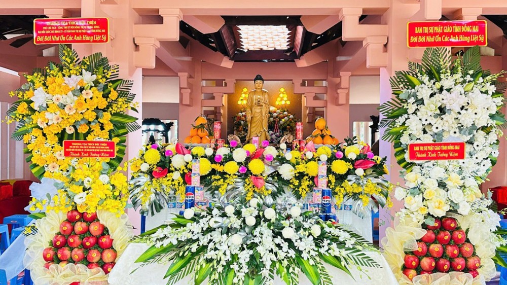 Tại buổi lễ, Đại đức Thích Bửu Hoà, thay mặt Ban Trị sự GHPGVN tỉnh Đồng Nai, đã dâng lời điếu văn tưởng niệm, bày tỏ lòng tri ân sâu sắc trước sự hy sinh to lớn của các Anh hùng Liệt sĩ. Sau đó, toàn thể đại biểu và hội chúng đã trang nghiêm hát Quốc ca, dành phút mặc niệm và thành kính dâng hương tưởng niệm anh linh các Anh hùng Liệt sĩ.
