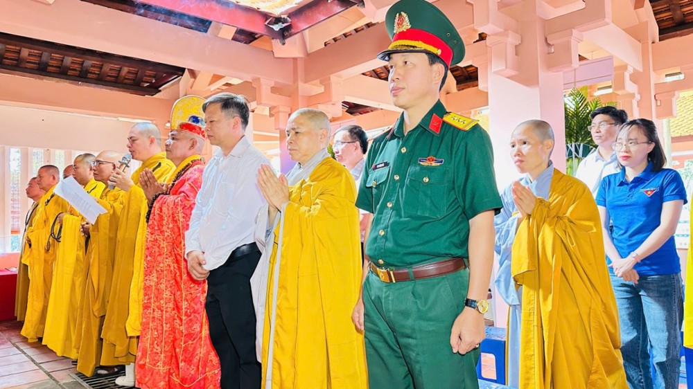 Tiếp nối chương trình, chư Tôn đức Tăng Ni đã cử hành nghi thức lễ Phật, tụng kinh cầu siêu, hồi hướng công đức cầu nguyện cho anh linh các Anh hùng Liệt sĩ được siêu thoát, an nghỉ nơi cõi an lành; đồng thời nguyện cầu quốc thái dân an, đất nước hòa bình, nhân dân an lạc.