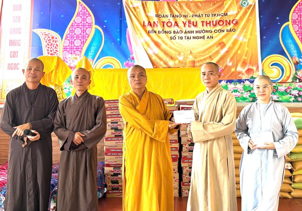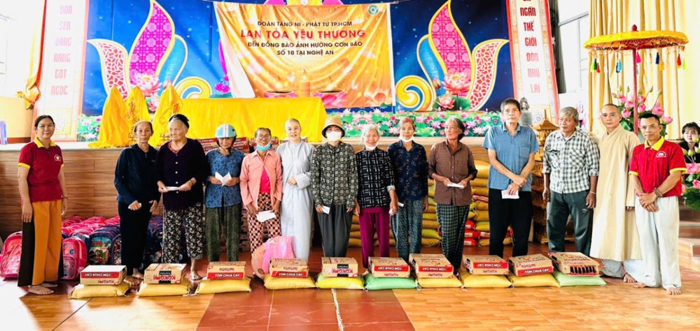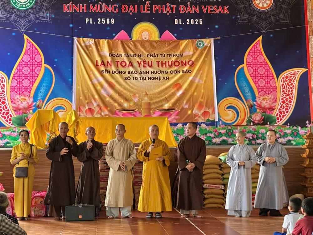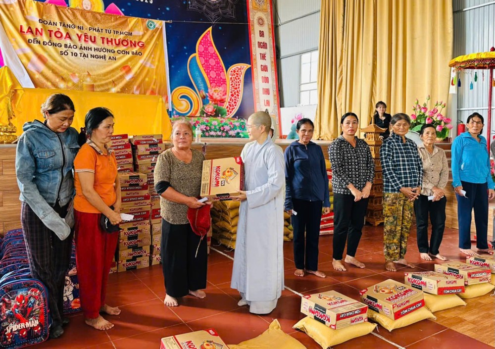 PSO - Trưa ngày 16/10/2025, được sự chứng minh và giới thiệu từ Ban Trị sự GHPGVN tỉnh Tây Ninh, đoàn Tăng Ni, Phật tử do Sư cô Thích Nữ Liên Thảo – Ủy viên Thường trực Ban Văn hóa Trung ương, Ủy viên Ban Giáo dục Phật giáo Trung ương, Ủy viên Ban Giáo dục – Ban Hoằng pháp tỉnh Tây Ninh, đại diện Đạo tràng Cát Tường – Đức Hòa, tỉnh Tây Ninh, làm trưởng đoàn, đã đến thăm và động viên, trao tặng 600 suất quà hỗ trợ bà con vùng bị thiệt hại nặng nề do cơn bão số 10 vừa qua tại tỉnh Nghệ An.