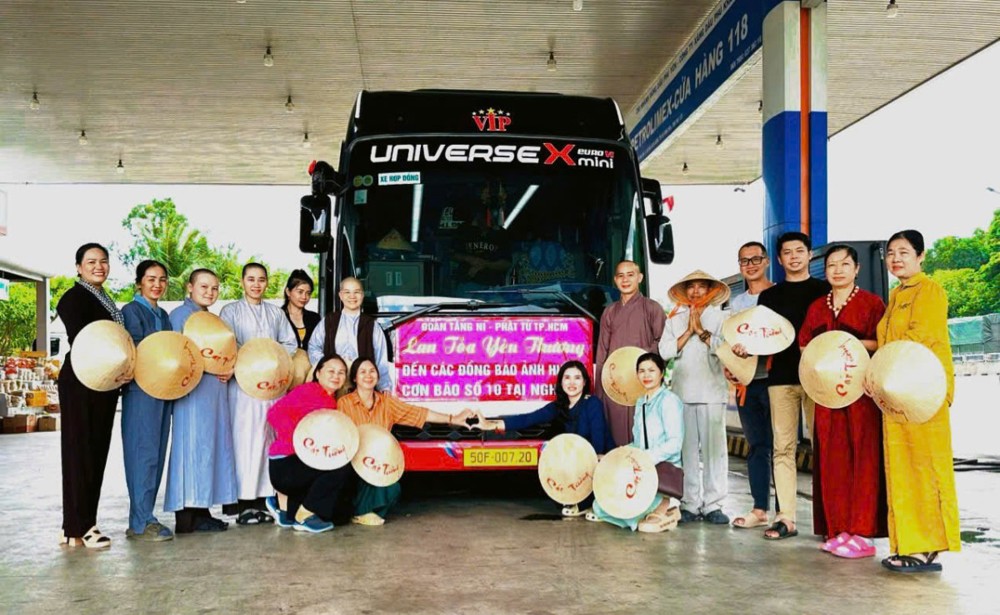 Chuyến đi là sự chung tay của quý Tăng Ni và Phật tử nhằm động viên các huynh đệ pháp lữ đang chịu thiệt hại do thiên tai và chia sẻ khó khăn với đồng bào nơi đây. Mặc dù thời gian chuẩn bị ngắn, mọi người đã cùng nhau góp công, góp của để vận động Kinh điển, nhu yếu phẩm, tịnh tài… nhanh chóng lên đường từ miền Nam hướng về miền Trung thân thương.