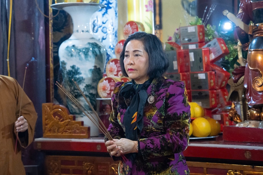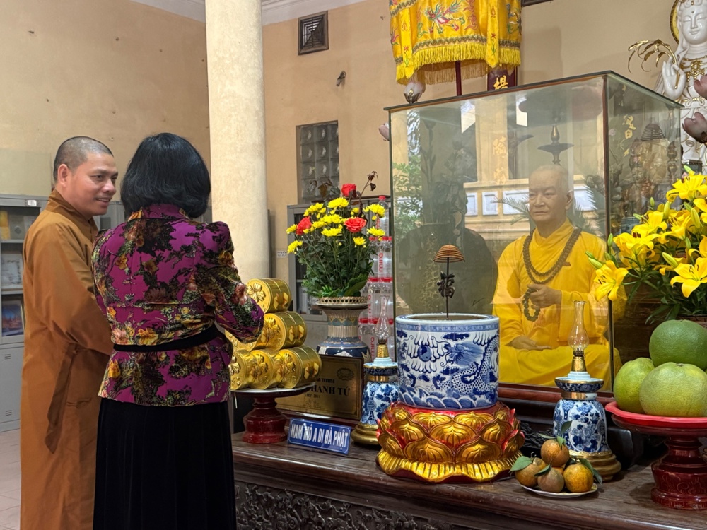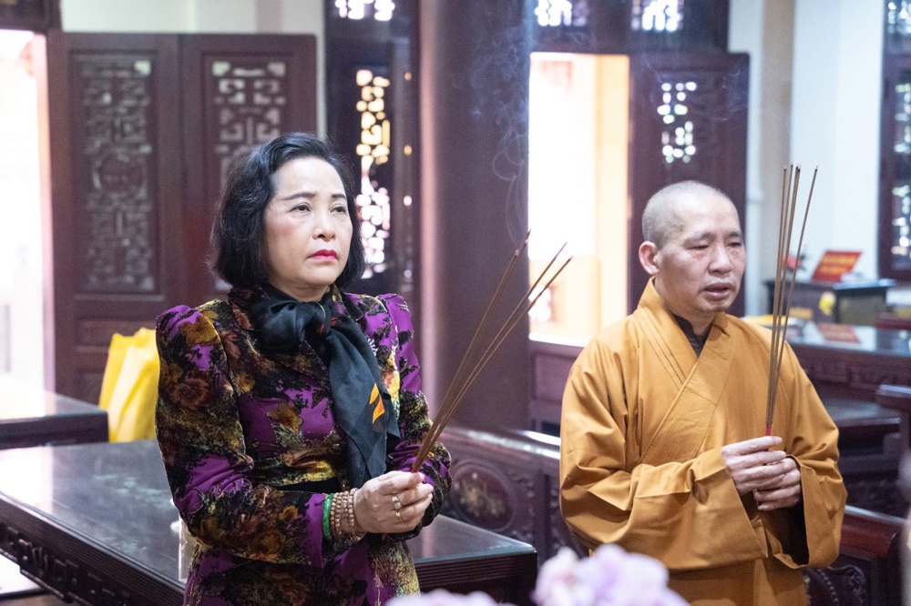 Di chuyển sang khu vực Tổ đường, bà đã dâng hương tưởng niệm cố Hòa thượng Thích Thế Long – nguyên Phó Chủ tịch Quốc hội khóa VII – cùng chư vị tiền bối hữu công từng là đại biểu Quốc hội. Đây là dịp để tri ân những đóng góp to lớn của các vị hòa thượng trong việc xây dựng pháp luật và vận động Tăng Ni, Phật tử sống "tốt đời, đẹp đạo".
