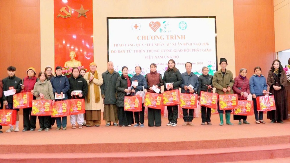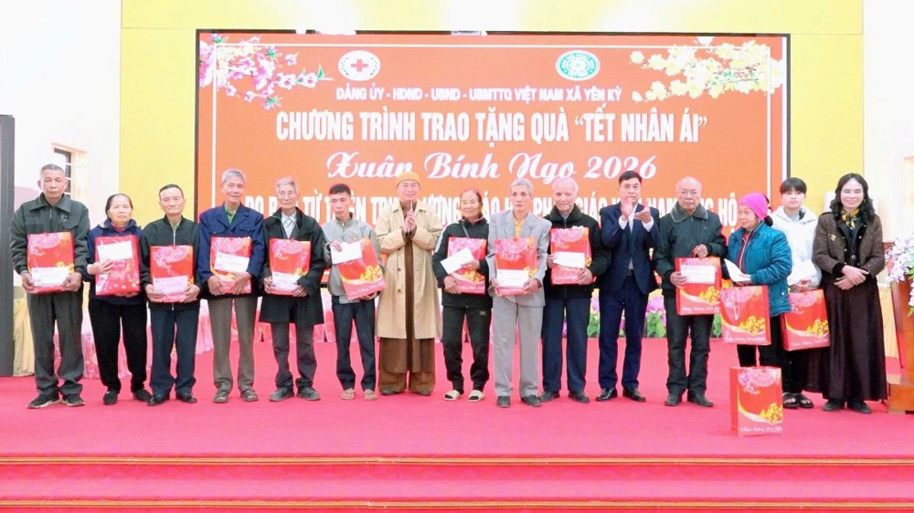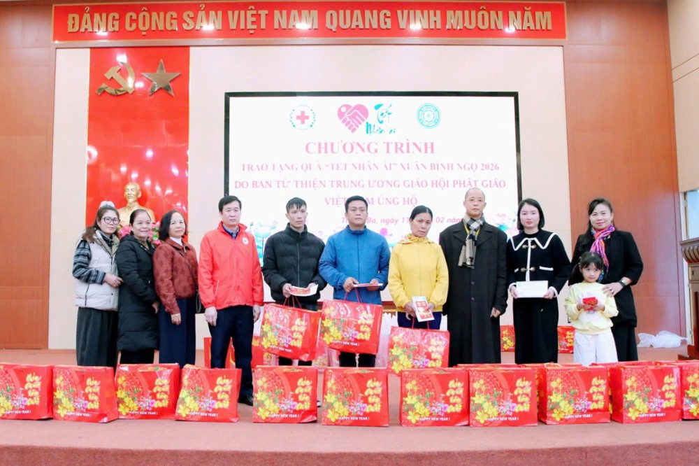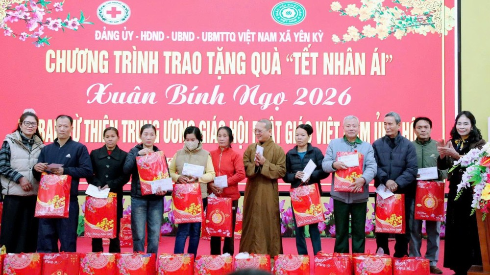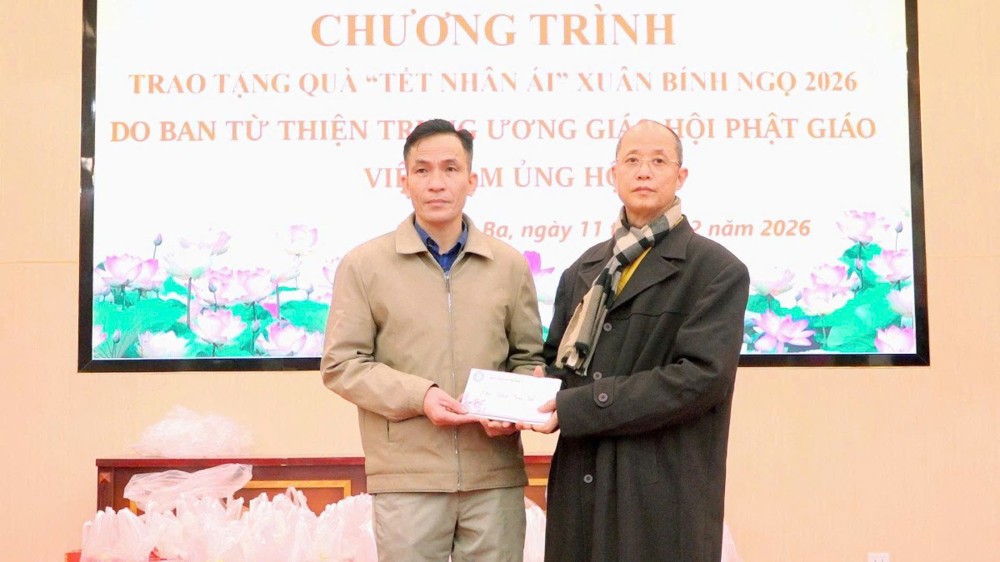PSO - Ngày 11/2/2026 (nhằm ngày 24 tháng Chạp năm Ất Tỵ), đoàn Ban Từ thiện Xã hội Trung ương thuộc Giáo hội Phật giáo Việt Nam do Thượng tọa Thích Minh Nghiêm – Ủy viên Thường trực Hội đồng Trị sự, Phó Ban Thường trực Ban Từ thiện Xã hội Trung ương, Trưởng Ban Trị sự GHPGVN tỉnh Phú Thọ làm trưởng đoàn, đã đến thăm và trao tặng quà Tết cho các hộ gia đình có hoàn cảnh khó khăn tại ba xã Chân Mộng, Thanh Ba và Yên Kỳ trên địa bàn tỉnh.