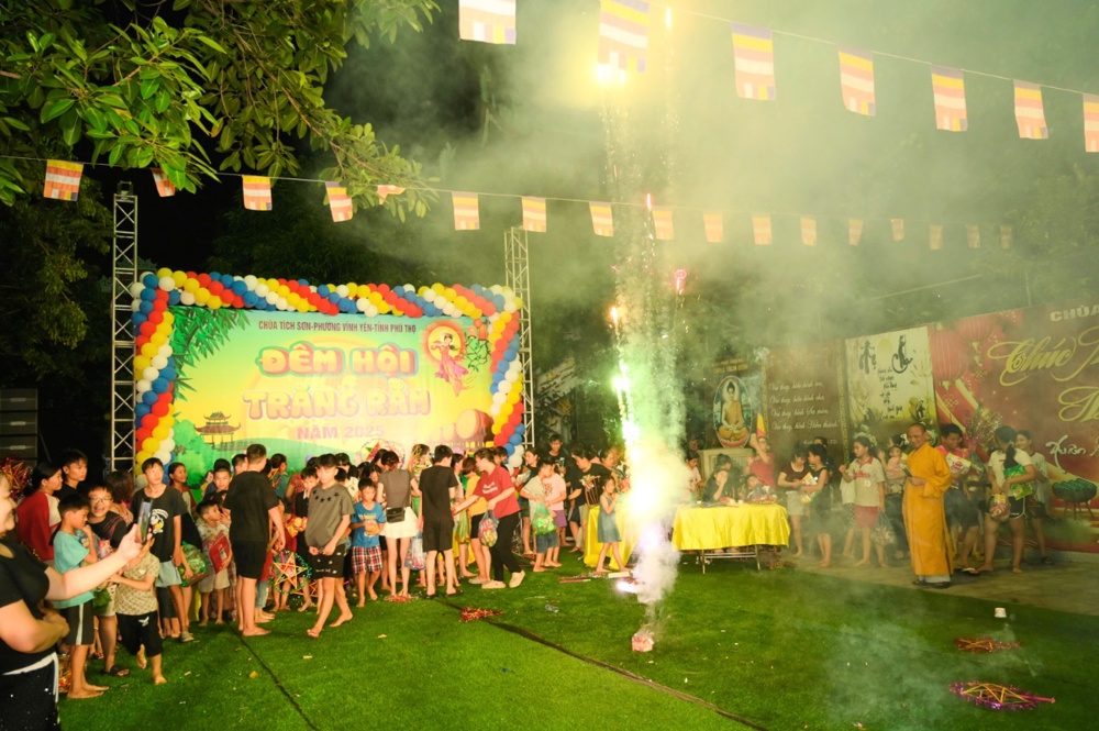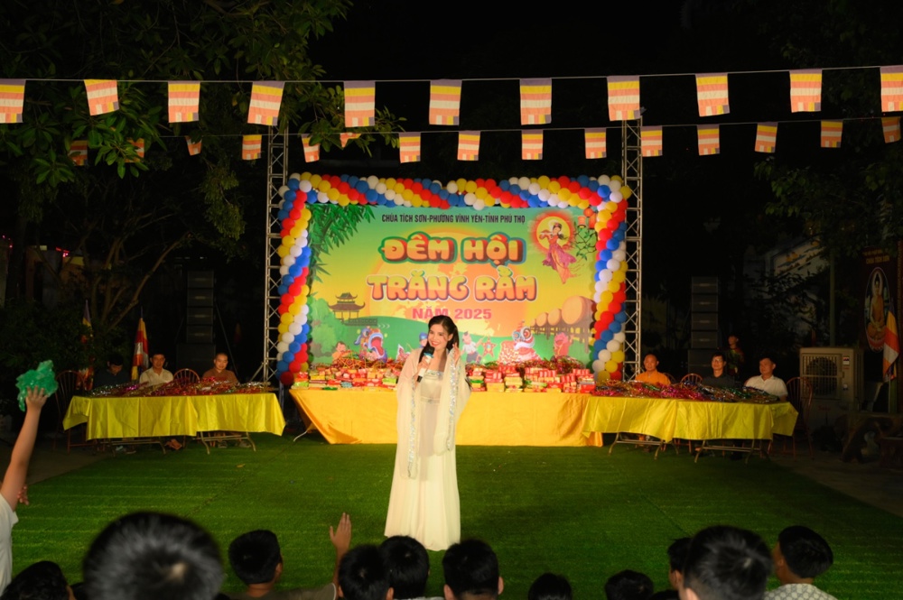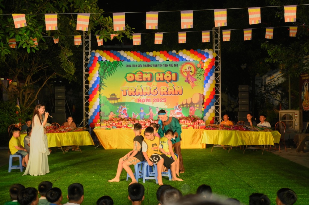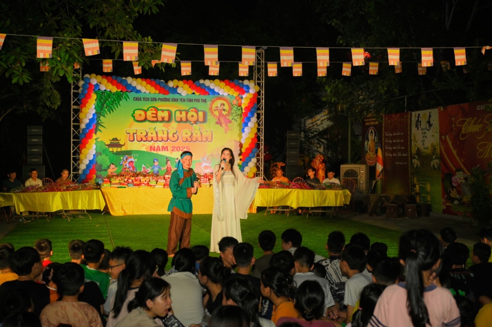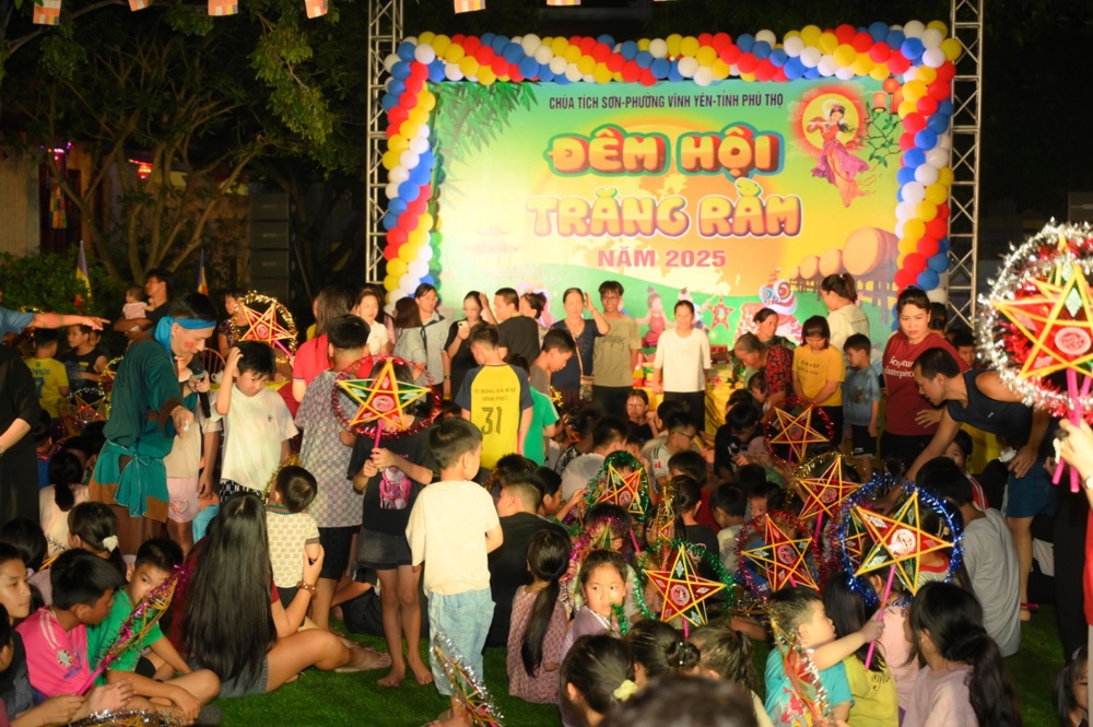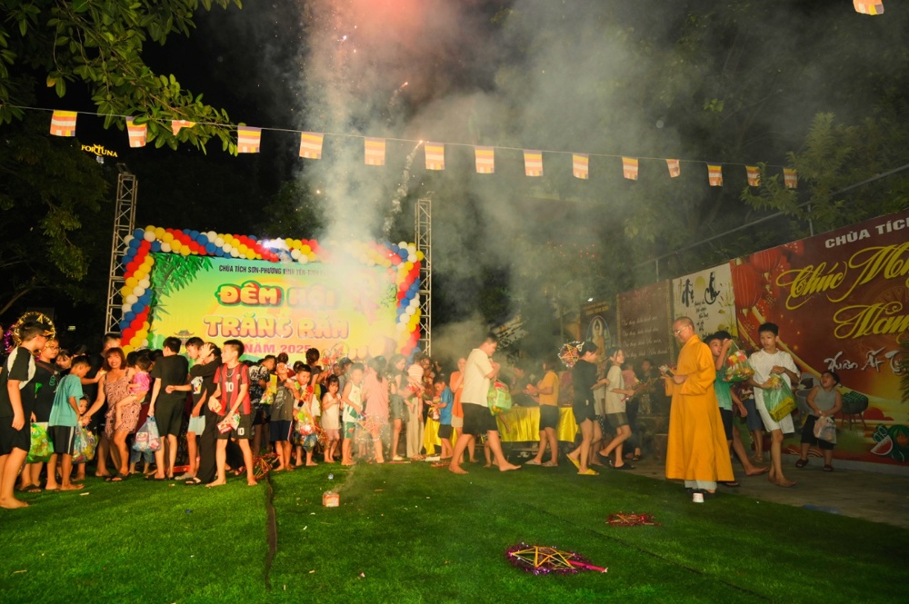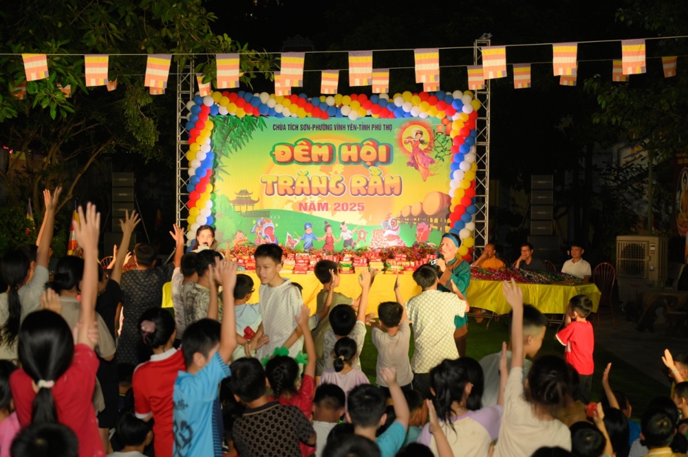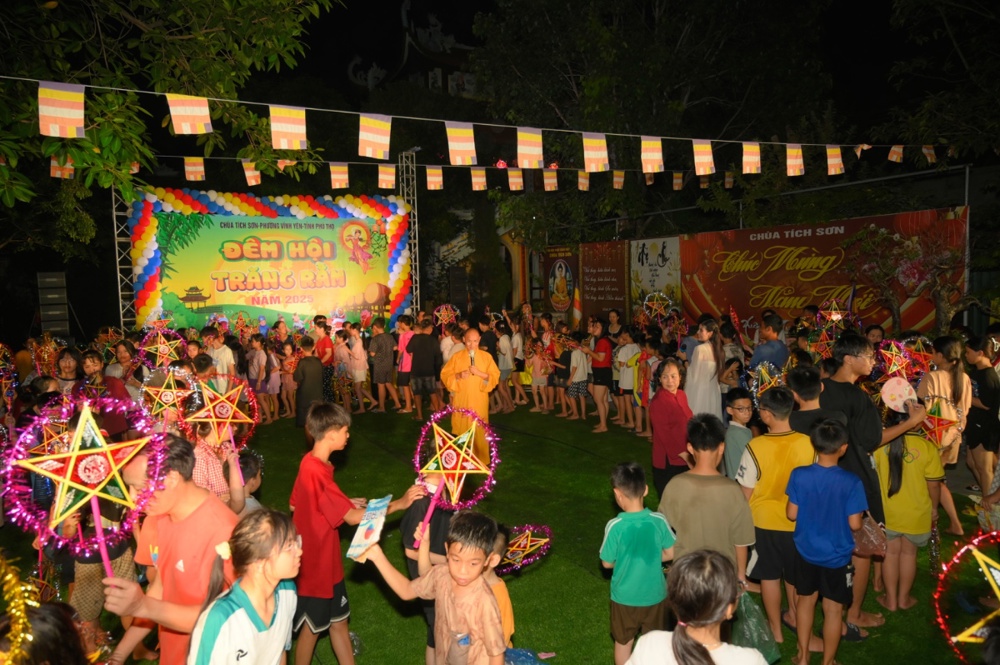 PSO - Hàng năm cứ mỗi dịp Trung thu đến, chùa Tích Sơn (phường Vĩnh Yên) tổ chức chương trình “Đêm hội Trăng rằm” để các em thiếu niên và nhi đồng tại địa phương được về dưới chân Phật Đài vui tết Trung thu. Tối ngày 5/10/2025 (nhằm ngày 14 tháng 8 năm Ất Tỵ), chương trình lại được diễn ra vô cùng náo nhiệt.