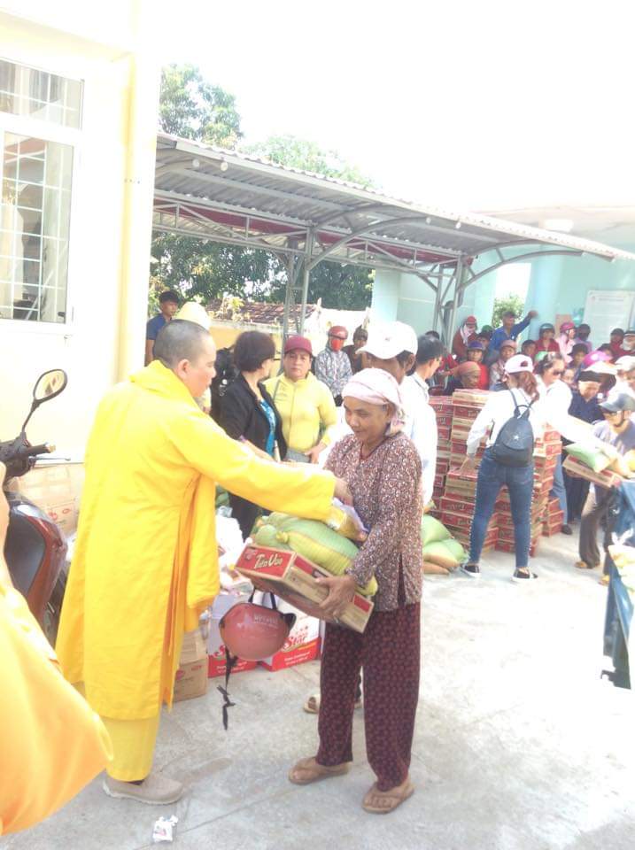 Tiếp theo đoàn đã trao tặng 200 phần quà cho bà con cùng xã, huyện Sông Hinh, và 100 phần quà cho người dân tộc Bana buôn Suối Đá, xã Phước Tân; 100 phần quà dành cho bà con nghèo xã Suối Bạc, huyện Sơn Hòa, tỉnh Phú Yên. Tiếp theo đoàn đã thẳng tiến về xã Ninh Phụng, thị Xã Ninh Hòa, tỉnh Khánh Hòa, tặng 300 phần quà cho những người mù và những gia đình nghèo. Chuyến đi từ thiện 4 xã huyện miền Trung mà Ni sư cùng Phật tử đã ủng hộ là 700 phần, mỗi phần trị giá 265.000đ, bao gồm 10kg gạo, 1 thùng mì, 1 chai dầu ăn, 1/2kg bột ngọt, 1kg đường, 1 chai dầu gió đỏ, 1 bì thư 50.000đ, với tổng trị giá là 185.000.000đ.