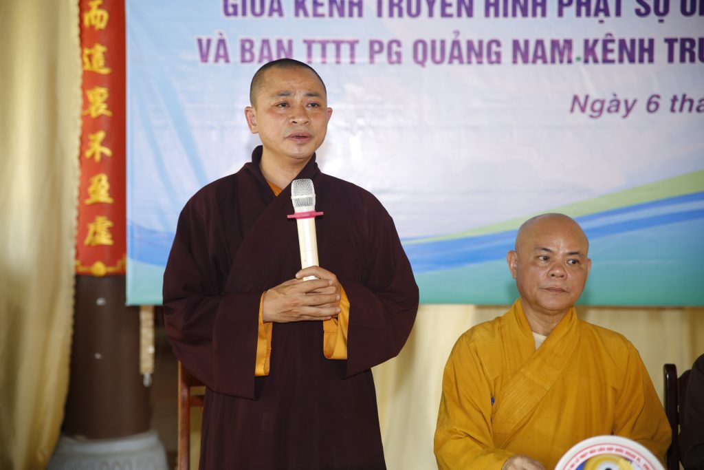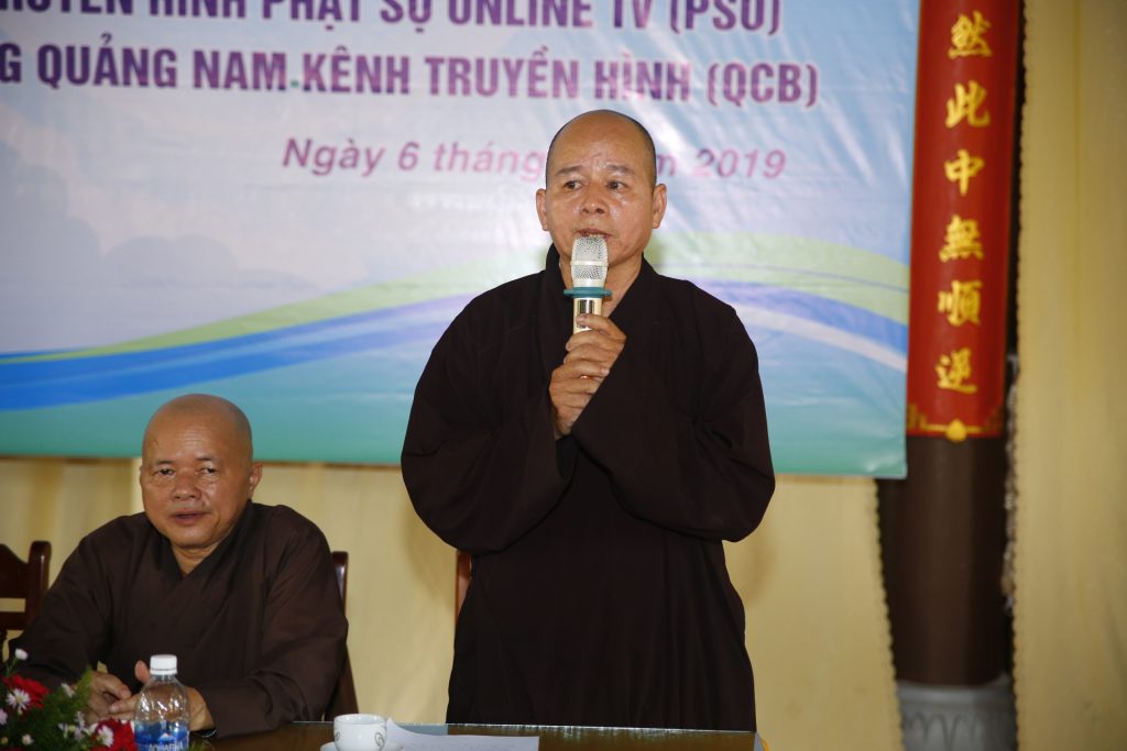 Phát biểu chào mừng ĐĐ. Thích Viên Hải và ĐĐ. Thích Tịnh Minh – Phó ban kiêm Thư ký Ban TTTT PG tỉnh đã trân trọng chào mừng chư Tôn giáo phẩm HĐTS, Kênh Phật sự Online - VP 2 TƯGH, chư Tăng Ni, Phật tử thành viên Ban Biên tập PSO hiện diện tại Quảng Nam; thông tin về sự phát triển của Ban cũng như kênh truyền hình Phật giáo QCB.