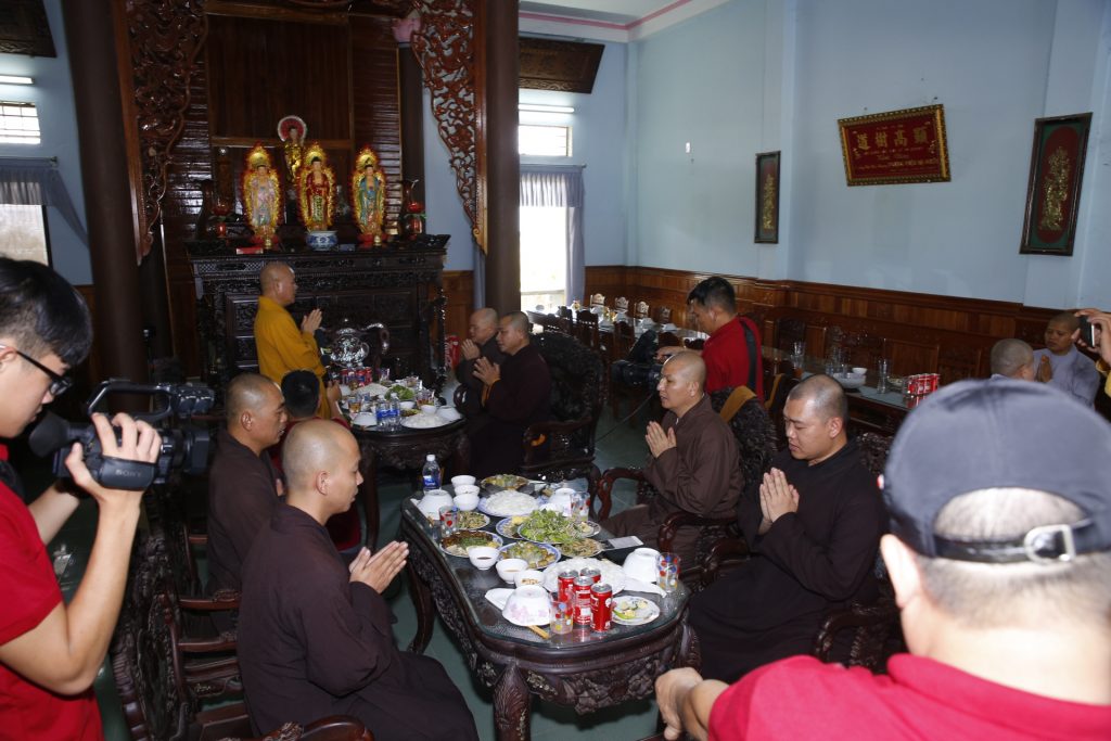 TT. Thích Đồng Nguyện bày tỏ sự cảm kích, tri ân sâu sắc đối với HT. Thích Tấn Đạt, bởi Ngài vừa quang lâm tham dự Lễ mít tinh cách đây không lâu, nay lại hoan hỷ trở về thăm lại mảnh đất miền Trung nắng lắm mưa nhiều, trong điều kiện nắng nóng khá khắc nghiệt đang diễn ra, hướng dẫn đoàn thực hiện chuyến hành trình lịch sử. Thượng tọa cũng hoan hỷ tán thán công đức của ê kip PSO, đồng thời nhắn nhủ rằng có được cơ hội thực hiện chuyến hành trình dọc dài Tổ quốc này, tuy vất vả nhọc mệt, nhưng đó cũng là cơ hội để các thành viên trong đoàn có những trải nghiệm khó quên, và có được thiện duyên phục vụ cho Đại lễ, một chuyến đi tràn đầy ý nghĩa; vậy nên ê kip phải vượt qua khó khăn, phát tâm tác nghiệp truyền thông mạnh mẽ để góp phần tạo nên thành công rực rỡ cho Đại lễ.