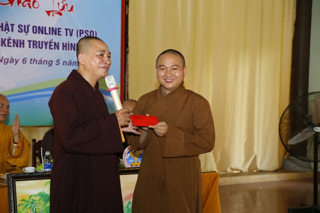Khép lại buổi gặp mặt giao lưu, Phật giáo Quảng Nam đã trao tặng đoàn đóa hoa tươi thắm cùng bức tranh làng quê sông nước hiền hòa để lưu niệm cho buổi gặp gỡ. Bên cạnh đó, để thắt chặt nghĩa tình, đoàn PSO cũng trao tặng Phật giáo tỉnh và Ban TTTT một biểu trưng kỷ niệm ngày Đức Phật Đản sinh. Đồng thời, là một người con của vùng quê Quảng Nam, ĐĐ. Thích Quảng Tiến cũng trao tặng đến Ban TTTT PG tỉnh chút tịnh tài để hỗ trợ các thành viên trong Ban tác nghiệp tốt hơn trong Đại lễ lần này.