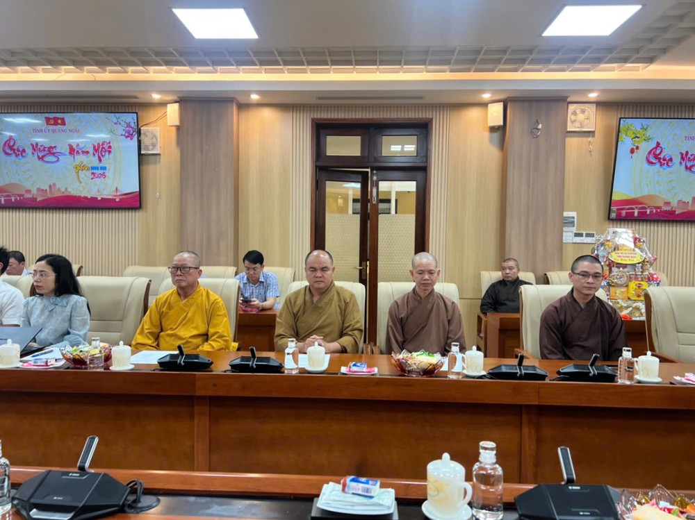 Thay mặt phái đoàn, Thượng tọa Thích Nhuận Bảo đã ân cần vấn an sức khỏe và gửi lời chúc mừng năm mới tốt đẹp nhất đến các cấp lãnh đạo tỉnh. Thượng tọa đặc biệt gửi lời chúc đến cá nhân ông Hồ Văn Niên, Bí thư Tỉnh ủy, một năm mới dồi dào sức khỏe, hanh thông trong công tác, tiếp tục lãnh đạo tỉnh Quảng Ngãi ngày càng phát triển bền vững.