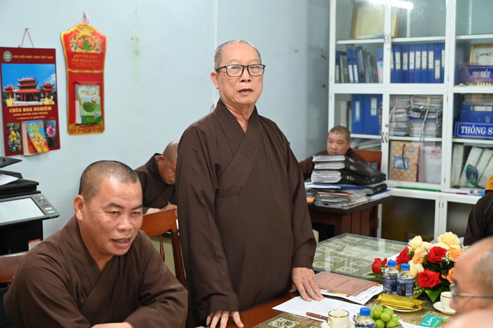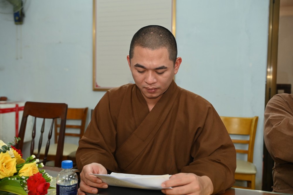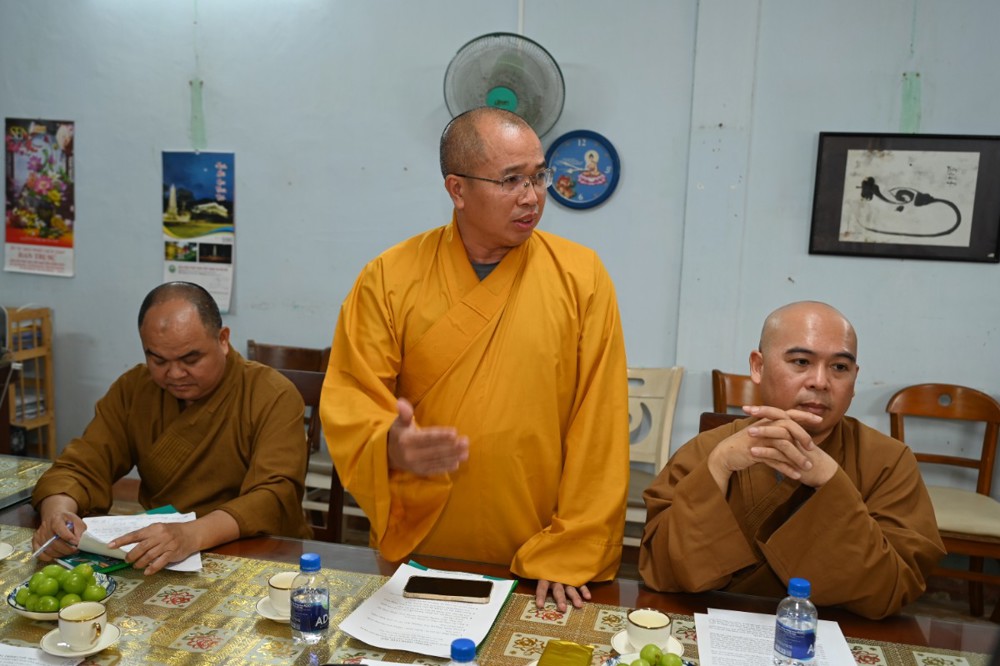 Tiếp đó, Thượng tọa Thích Nhuận Pháp, Phó Ban kiêm Chánh Thư ký Ban Trị sự GHPGVN tỉnh, đã trình bày chi tiết bản Dự thảo báo cáo công tác Phật sự đã thực hiện trong tháng vừa qua, nổi bật là các hoạt động từ thiện xã hội và công tác quản lý Tăng Ni, Tự viện.