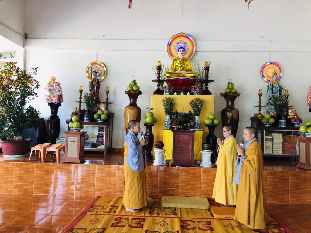 Sau cùng là giờ sinh hoạt của Sư cô Trụ trì với đại chúng: sư cô hỏi thăm sức khỏe và khuyến khích mọi người về nhà cố gắng tu tập, làm thêm nhiều việc thiện để vun bồi quả phước cho bản thân và gia đình.