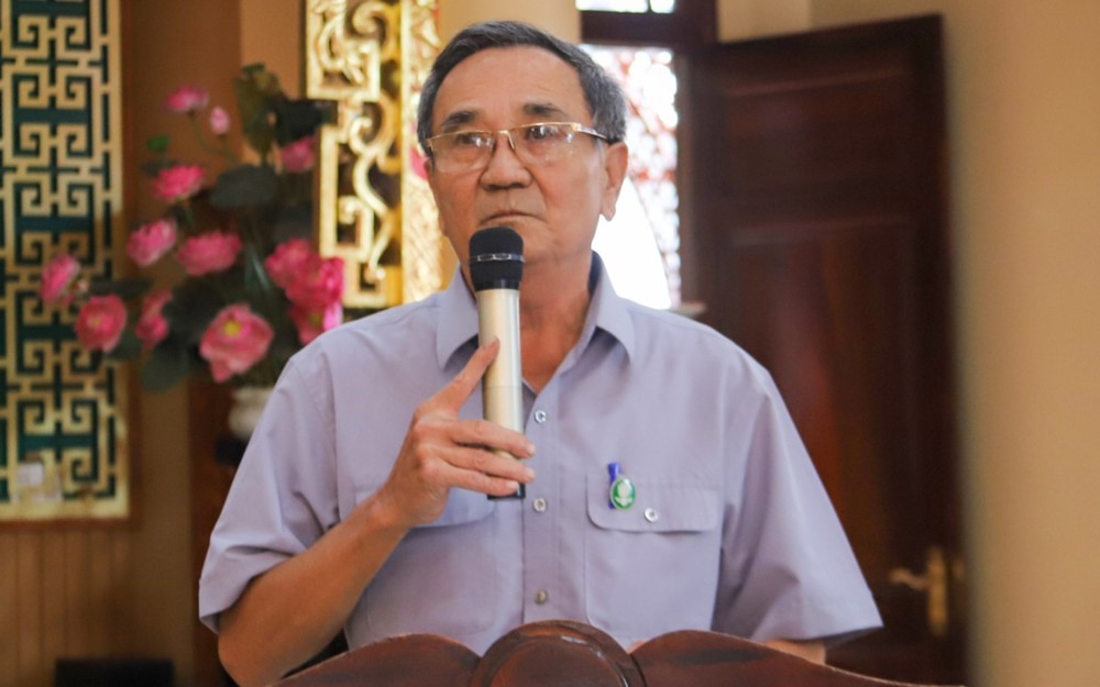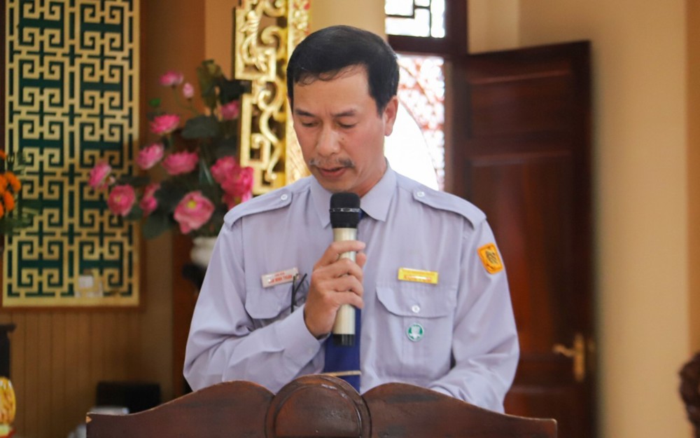 Thay mặt Ban Hộ trì Tam bảo chùa Huệ Hương, bác Lê Hữu Khải trang nghiêm tuyên đọc Quyết định công nhận Ban Huynh trưởng mới.