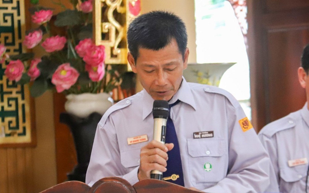Tiếp đó, Huynh trưởng cấp Tín Vạn Giác – Lâm Minh Thoại trình bày báo cáo sơ lược quá trình tu học và sinh hoạt của Gia đình Phật tử Huệ Hương qua từng giai đoạn, khẳng định sự nỗ lực của tập thể Huynh trưởng và đoàn sinh trong công tác tu học, giáo dục thanh thiếu đồng niên Phật tử tại địa phương.