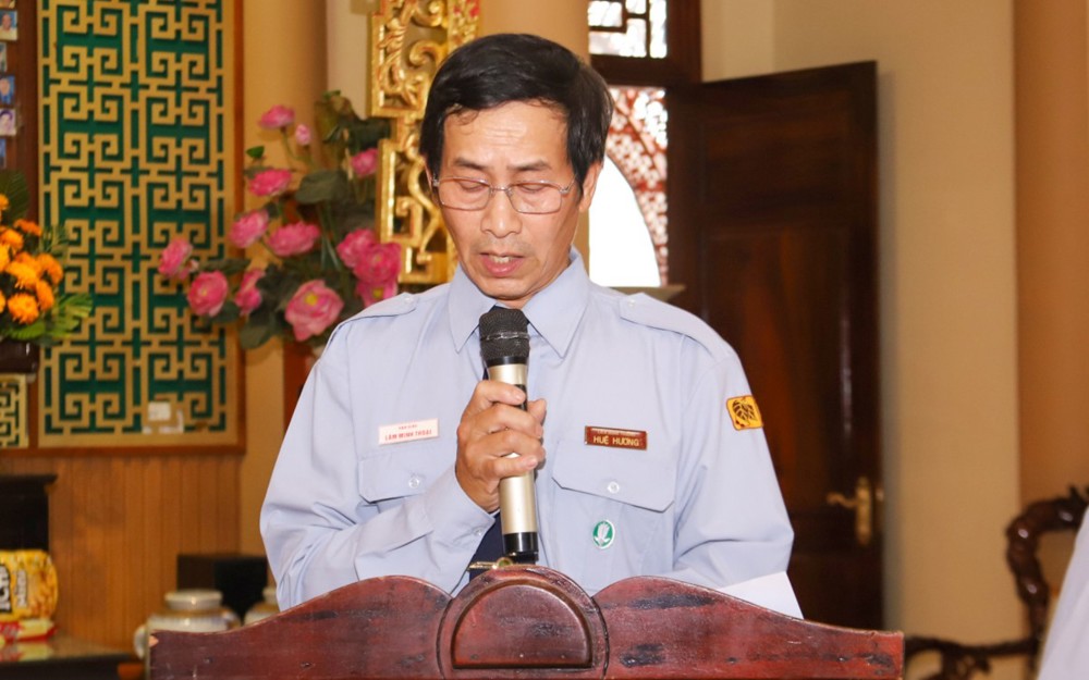 Buổi lễ khép lại trong không khí trang nghiêm, hoan hỷ. Huynh trưởng cấp Tín Vạn Hòa – Lâm Minh Thuận đại diện Ban Tổ chức dâng lời cảm tạ, tri ân chư Tôn đức, quý khách mời, Huynh trưởng, đoàn sinh và Phật tử đã về tham dự, góp phần làm nên thành tựu viên mãn cho buổi lễ đầy ý nghĩa.