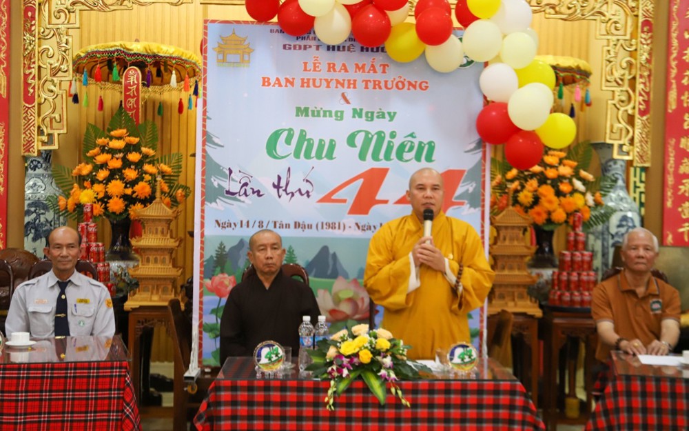 Phát biểu chúc mừng, Huynh trưởng cấp Tấn Thị Hoàng – Nguyễn Văn Tiên, biểu dương tinh thần gắn bó, đoàn kết của đơn vị, đồng thời mong rằng Gia đình Phật tử Huệ Hương sẽ tiếp tục phát triển vững mạnh, là điểm sáng trong công tác giáo dục thanh thiếu Phật tử tỉnh nhà.