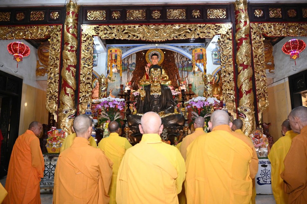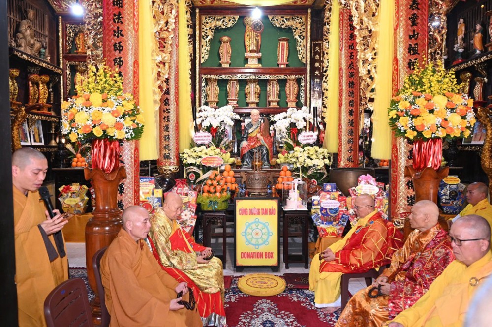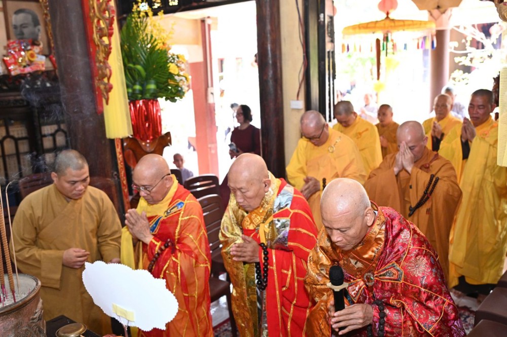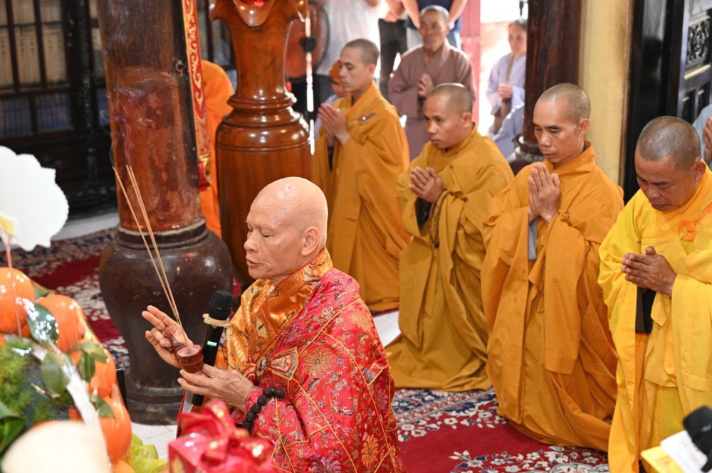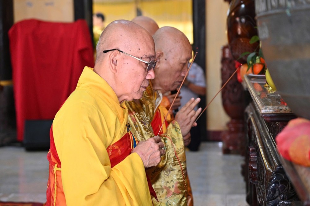 Trong không khí trang nghiêm, khói trầm quyện tỏa, chư Tôn Giáo phẩm cùng toàn thể đại chúng đã thành kính dâng hương, đảnh lễ giác linh Tổ sư Pháp Hóa và chư vị tiền bối Tổ sư, tưởng niệm ân đức hoằng hóa sâu dày của Ngài đối với Phật giáo tỉnh nhà.