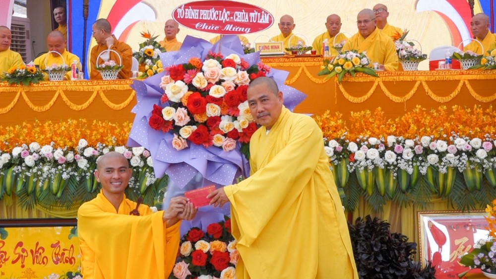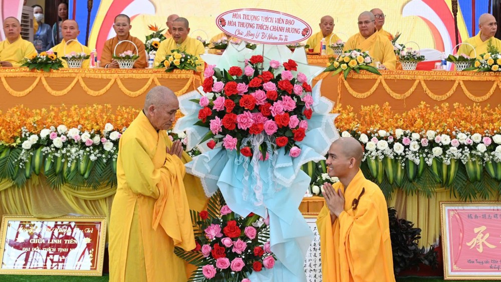 Buổi lễ còn đón nhận nhiều lẵng hoa, tịnh tài và phần quà chúc mừng từ chư Tôn đức, quý cấp lãnh đạo cùng các tổ chức, cá nhân, thể hiện sự quan tâm và niềm kỳ vọng đối với sự phát triển của chùa Linh Tiên trong thời gian tới.