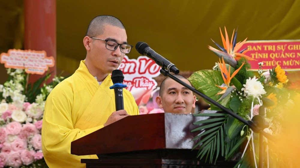 Xúc động trong buổi lễ, thân sinh của Đại đức tân trụ trì đã có đôi lời chia sẻ, gửi gắm niềm tin nơi người con xuất gia, thể hiện sự hòa quyện giữa đạo hiếu và chí nguyện xuất trần.