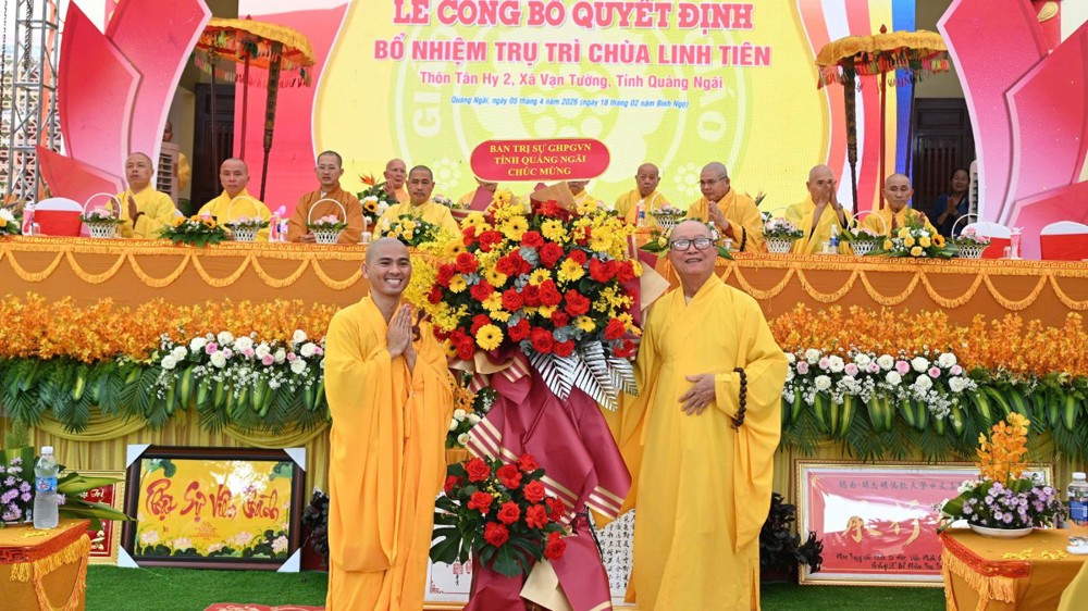 Ngày 05/4/2026 (nhằm 18/02 năm Bính Ngọ), Ban Trị sự GHPGVN tỉnh Quảng Ngãi trang nghiêm tổ chức lễ công bố quyết định bổ nhiệm Đại đức Thích Tịnh Nghĩa đảm nhiệm trụ trì chùa Linh Tiên.