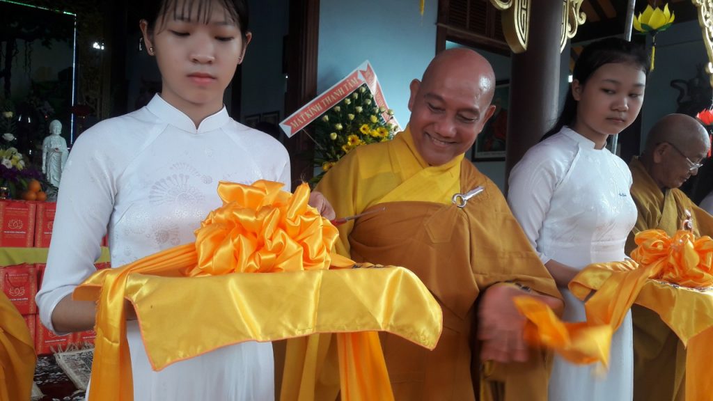 Sau khi hoàn thành các nghi thức: cắt băng, niêm hương bạch Phật, cúng Ngọ… , Sư cô Trụ trì đã cung thỉnh chư Tôn thiền đức quang lâm quả đường chứng minh buổi lễ Trai tăng để bổn tự được ân triêm công đức.