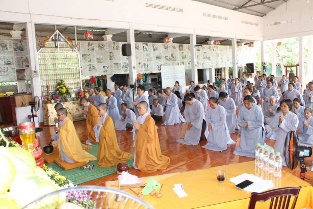 Sau khi đã hoàn thành Nghi thức Mộc Dục, đại chúng cùng cúng Ngọ và dùng cơm trong chánh niệm.