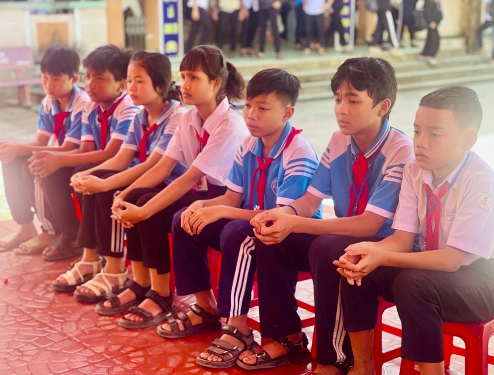 Về phía chính quyền và nhà trường có đại diện Hội Chữ thập đỏ tỉnh Quảng Ngãi, Ban Giám hiệu cùng các thầy cô giáo trường PTDTBT Trà Sơn và 10 em học sinh vinh dự nhận học bổng đợt này.