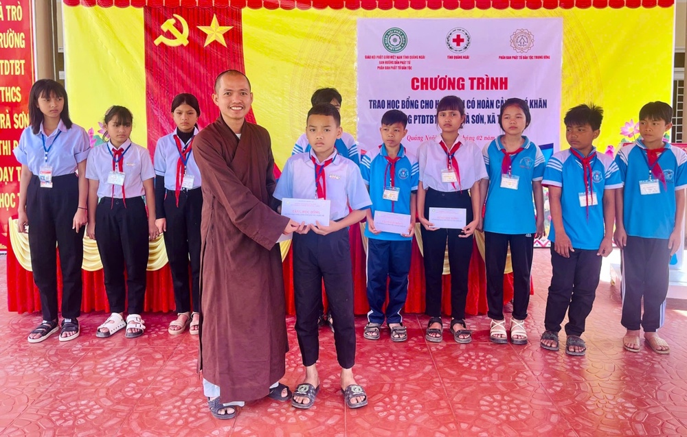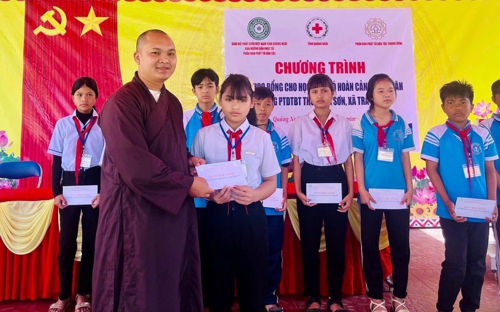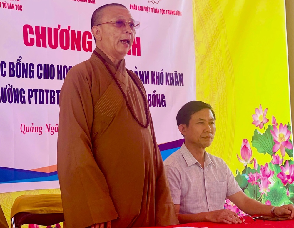 Phát biểu tại buổi lễ Thượng toạ Thích Quảng Tuấn nhấn mạnh, Chương trình trao học bổng không chỉ mang giá trị vật chất mà còn chứa đựng ý nghĩa tinh thần to lớn. Đây là nguồn động viên kịp thời giúp con em đồng bào dân tộc thiểu số tại Trà Bồng có thêm nghị lực để vượt lên hoàn cảnh khó khăn, san sẻ gánh nặng kinh tế cho gia đình. Thông qua hoạt động. Phân ban Phật tử Dân tộc Trung ương mong muốn tiếp thêm ngọn lửa hiếu học, tạo điều kiện thuận lợi để các em vững bước trên con đường học vấn, hướng tới một tương lai tươi sáng hơn, đóng góp cho sự phát triển của quê hương.