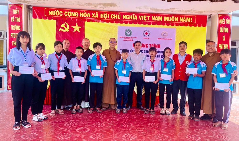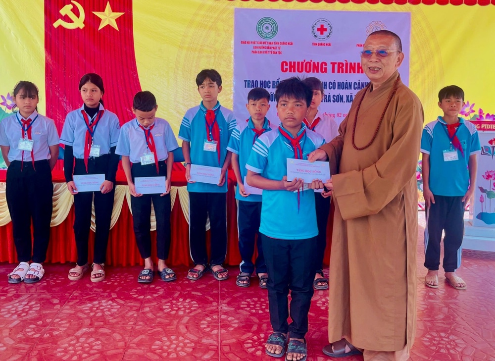Tại buổi lễ, phái đoàn đã trao tận tay các em học sinh những suất học bổng ý nghĩa. Mỗi suất trị giá 3 triệu đồng/năm học, trong đó kỳ I đã trao 1 triệu đồng và kỳ II trao đợt này là 2 triệu đồng. Nguồn kinh phí do Ban Kinh tế Tài chính Trung ương GHPGVN, chùa Ba Vàng (Quảng Ninh) cùng các nhà hảo tâm đồng tài trợ.