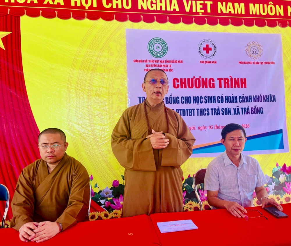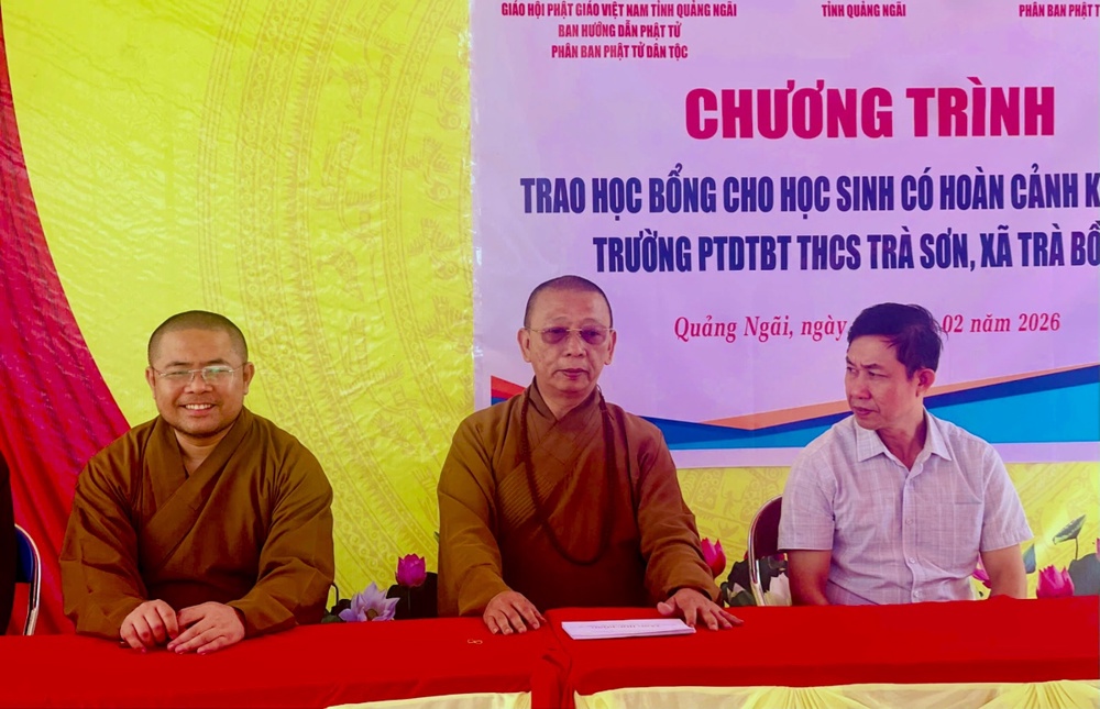 PSO: Tiếp tục hành trình lan tỏa yêu thương đến với vùng sâu vùng xa, ngày 05/02/2026, Phân ban Phật tử Dân tộc Trung ương đã tổ chức chương trình trao học bổng kỳ II (năm học 2025 – 2026) cho các em học sinh dân tộc thiểu số tại trường PTDTBT Trà Sơn, xã Trà Bồng, tỉnh Quảng Ngãi.