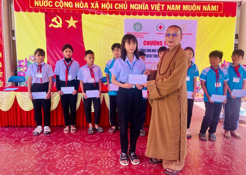 Buổi lễ khép lại trong niềm hoan hỷ của chư Tôn đức, các thầy cô giáo và các em học sinh vùng cao Quảng Ngãi.
