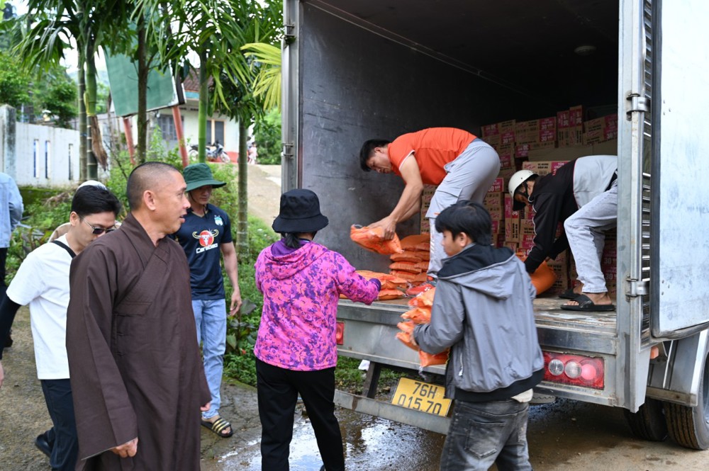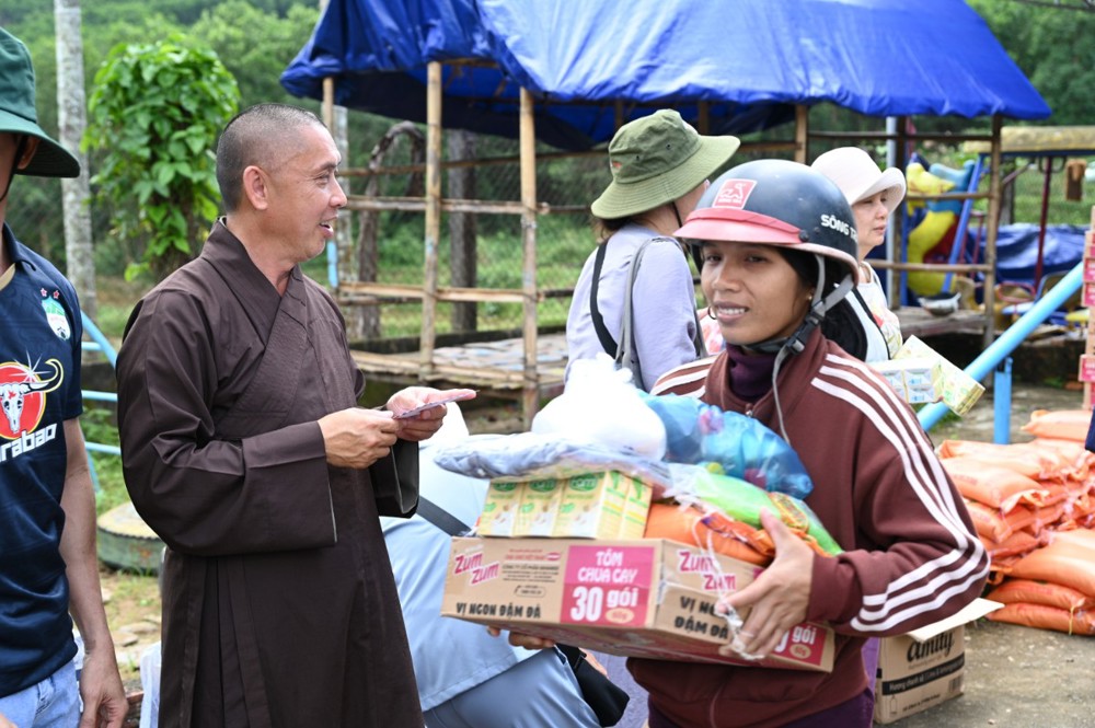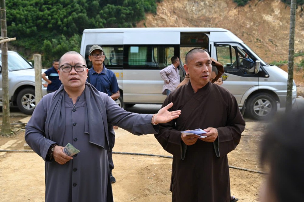 Phái đoàn thiện nguyện có sự tham gia của Thượng tọa Thích Minh Chơn (Tu viện Kim Sơn, Hoa Kỳ), Đại đức Thích Giác Tân (Thiền viện Toàn Giác, Đồng Nai), Ni sư Thích Nữ Huệ Như (Chánh Thư ký Phân ban Ni giới tỉnh Quảng Ngãi, Trụ trì chùa Long An), Sư cô Thích Nữ Quảng Hà (chùa Viên Quang, phường Nghĩa Lộ, tỉnh Quảng Ngãi) cùng quý mạnh thường quân và Phật tử. Đặc biệt, Phật tử Đức Thịnh đã đóng vai trò kết nối quan trọng, giúp đoàn nhanh chóng tiếp cận và phối hợp hiệu quả với chính quyền địa phương.
