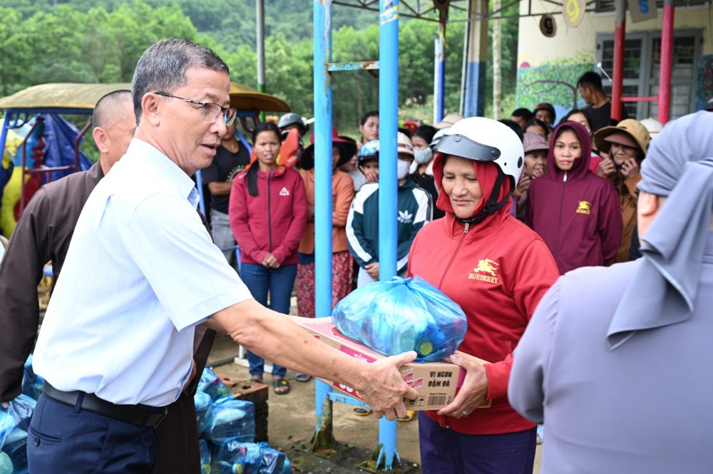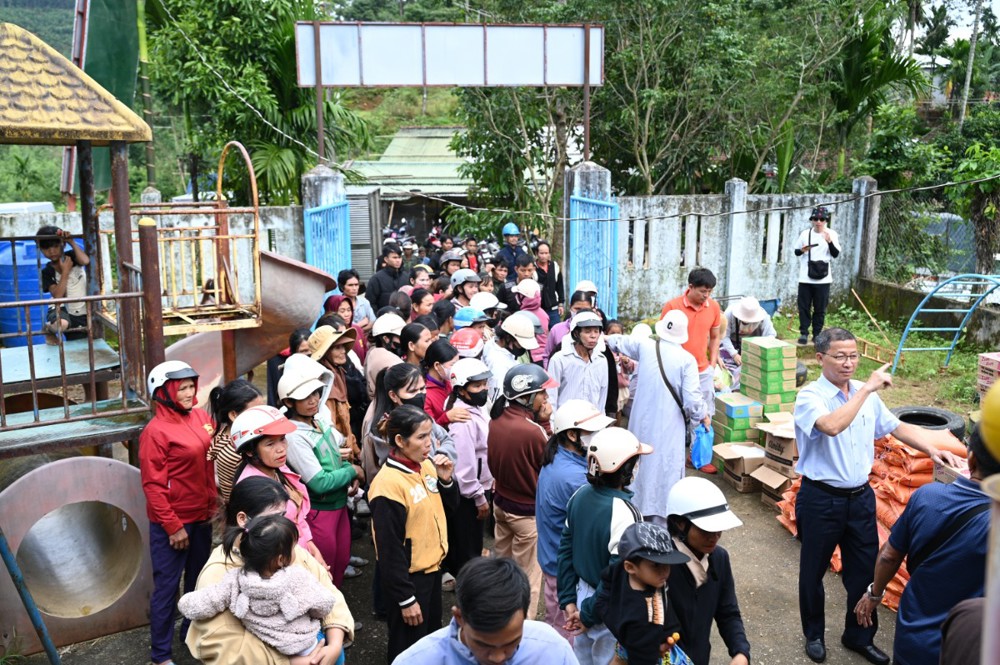 Một trong những điểm nhấn của chuyến đi là hoạt động thăm hỏi trực tiếp các gia đình chịu thiệt hại nặng nề do sạt lở và lũ quét.